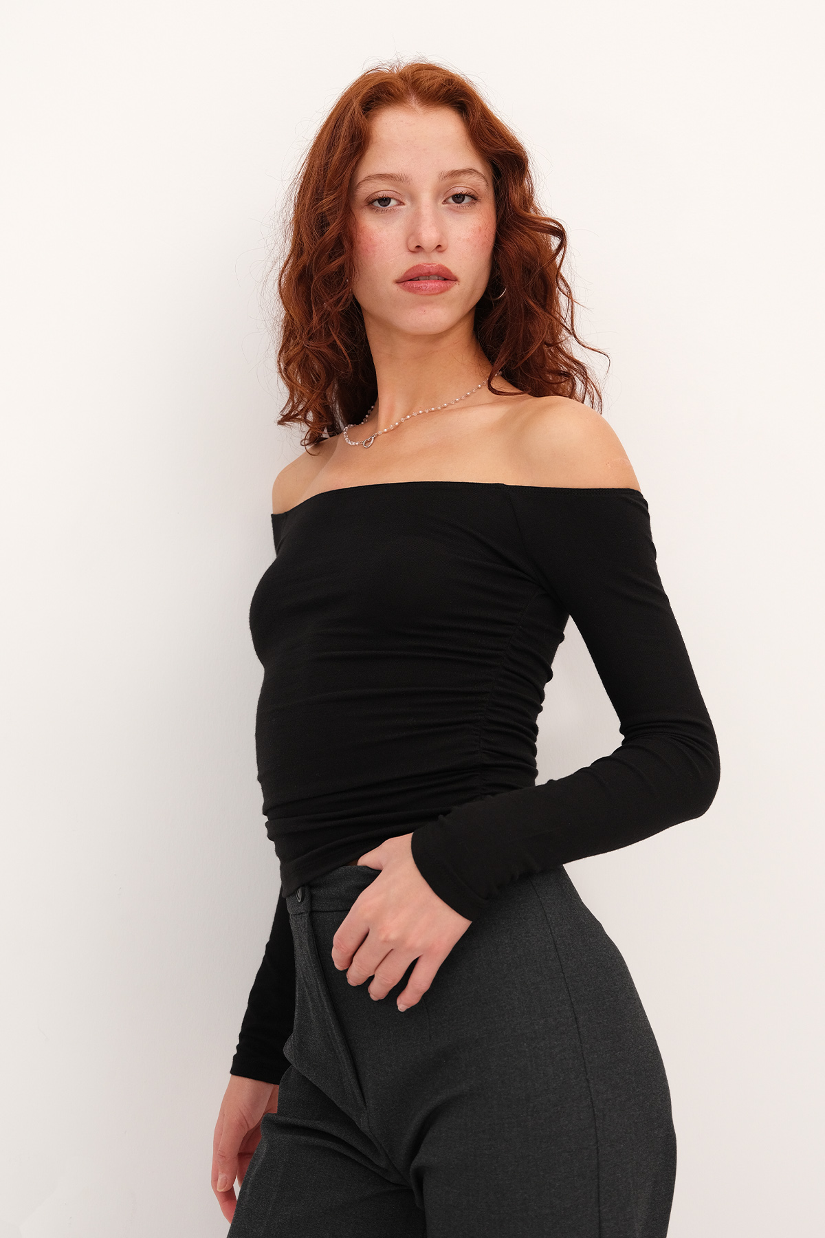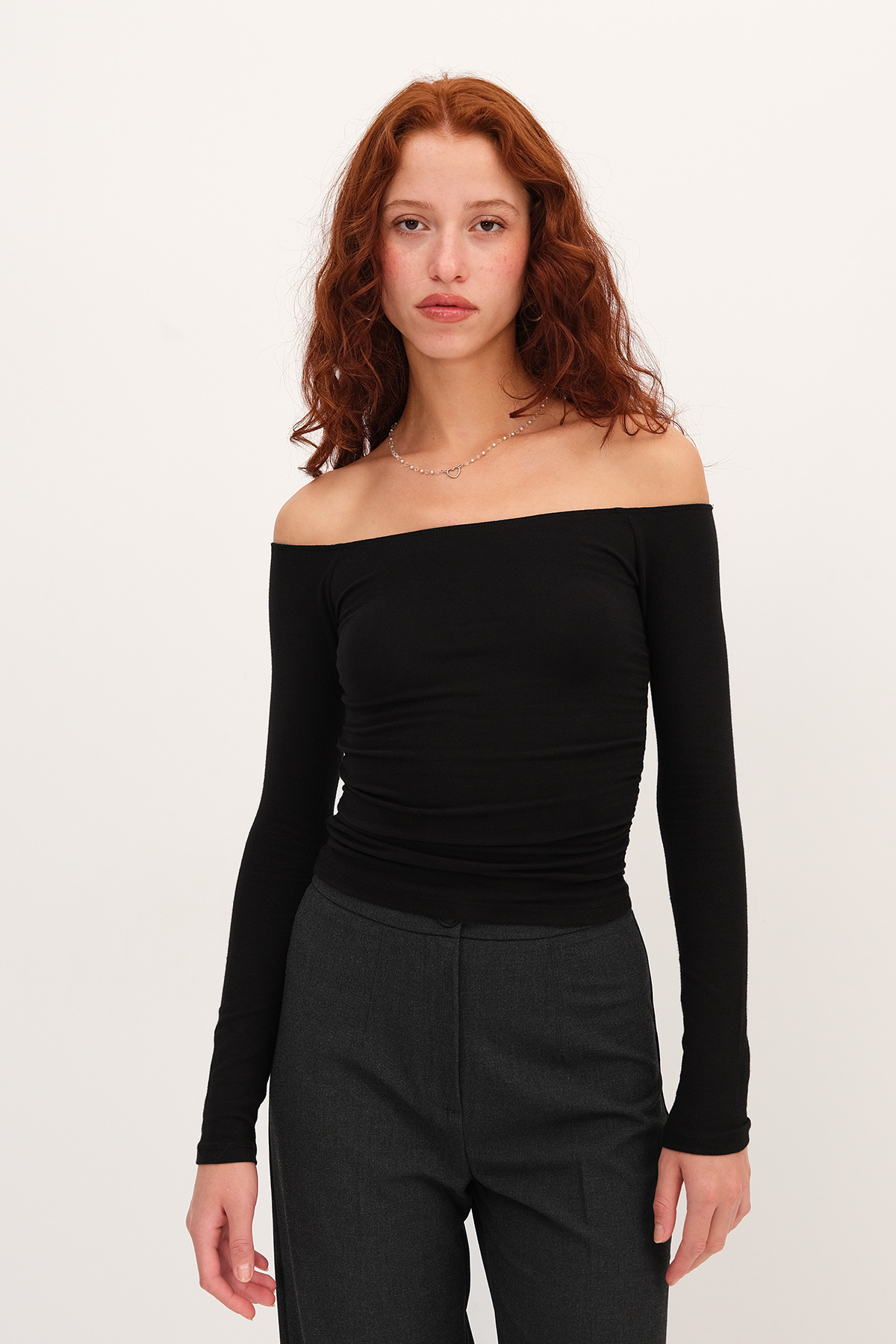 * Kayık yaka, uzun kollu,* Yanları büzgülü, düz renk,* Vücudu saran bluz,* Ürün içeriği: %95 Pamuk %5 Elastan,* Manken üzerindeki ürün 36/S bedendir.* Numuna Beden Ölçüleri: Boy: 43 cm Göğüs: 60 cm Kol Boyu: 47 cm (1-3 cm arasında değişiklik gösterebilir)* Ürün çekimlerinde renkler, ışık farklılığından dolayı değişkenlik gösterebilir.