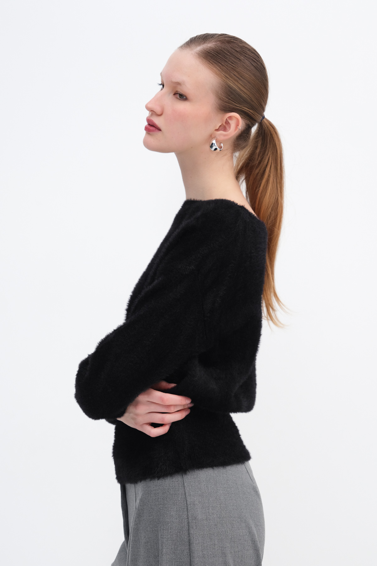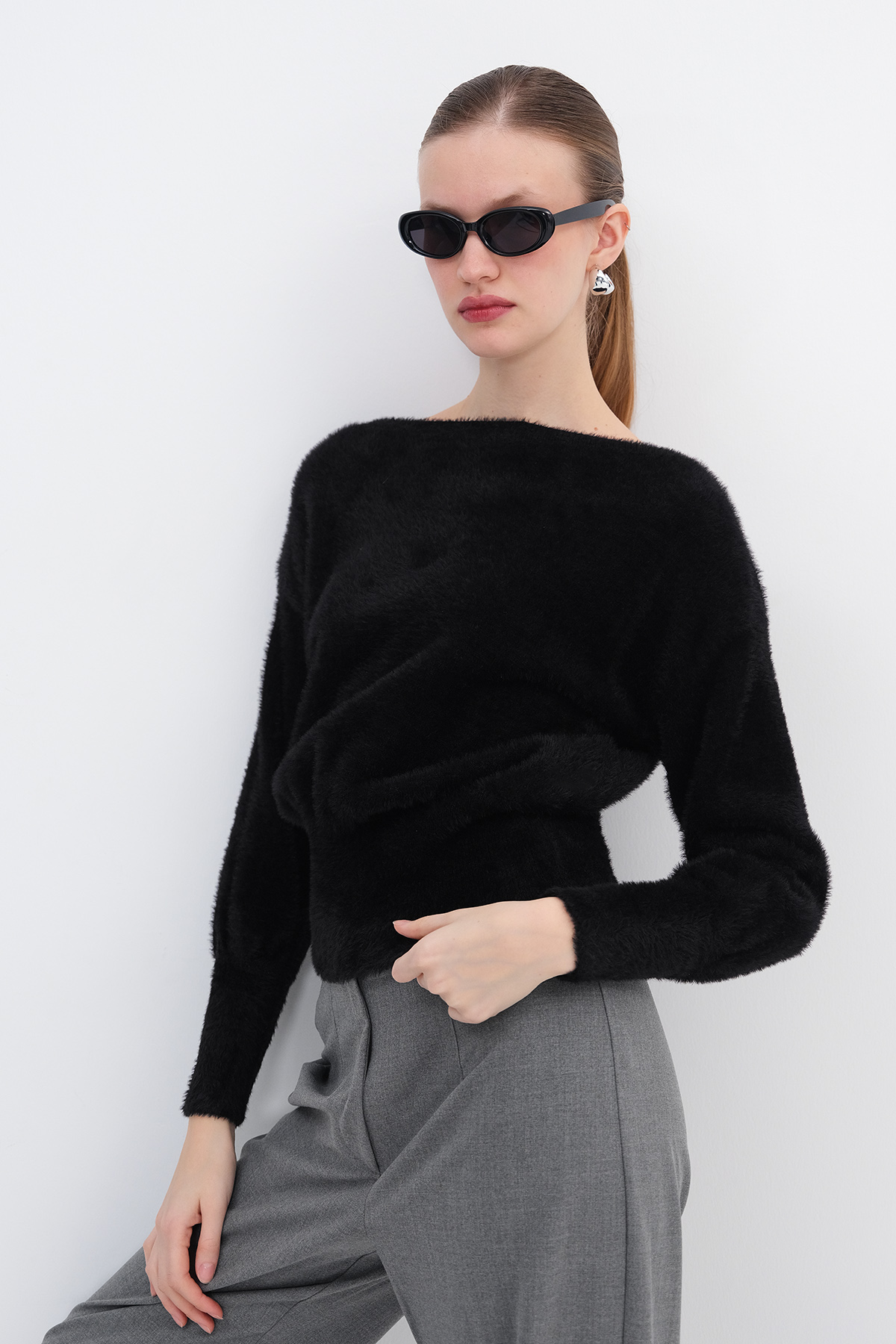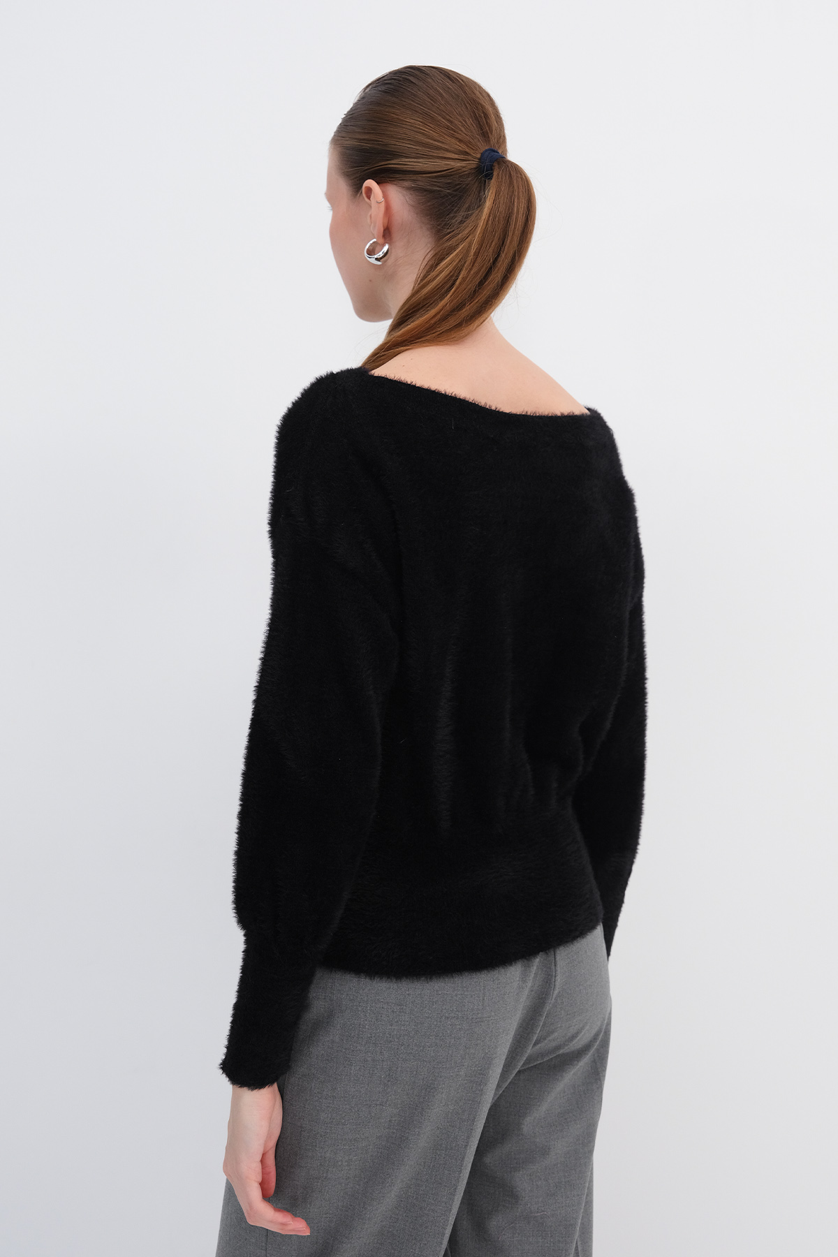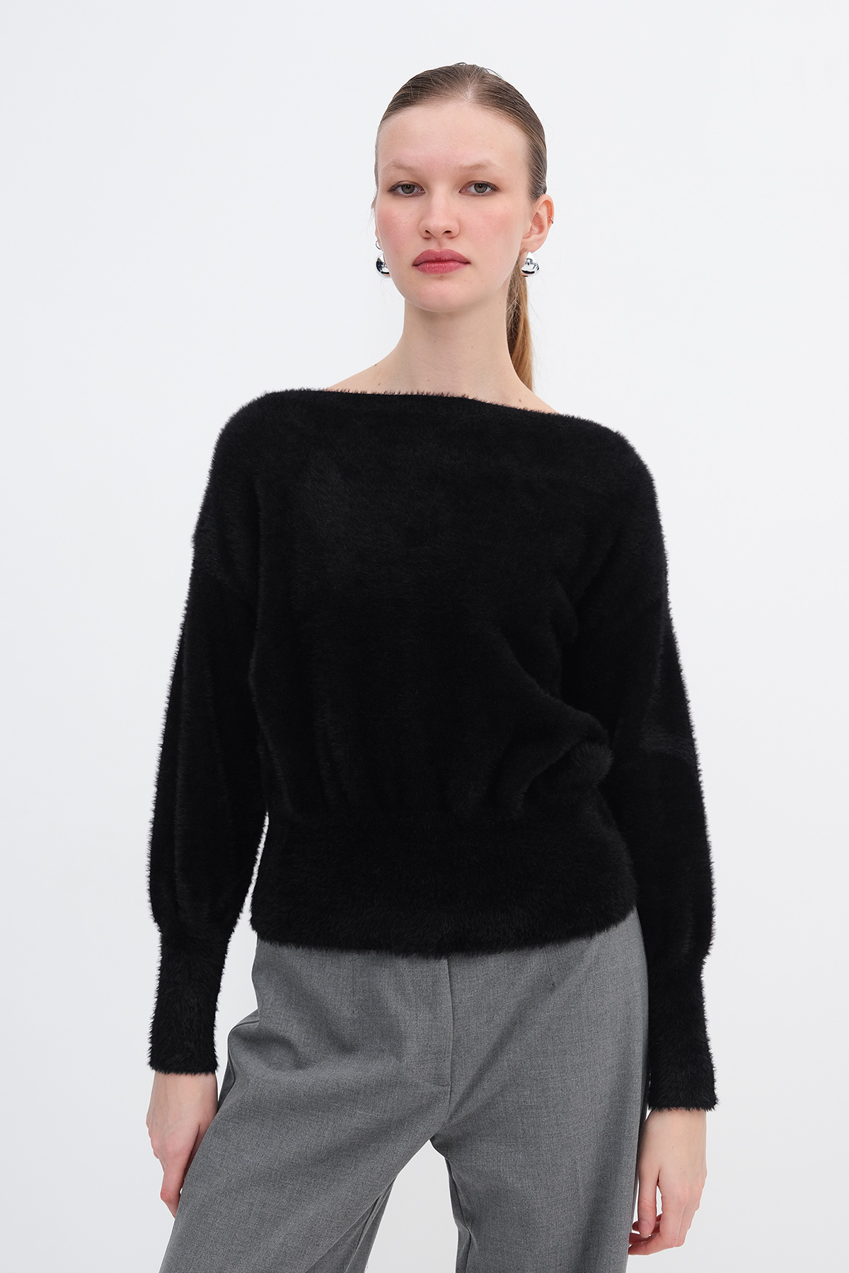* Kayık yaka, uzun kollu, yumuşak dokulu, düz renk,