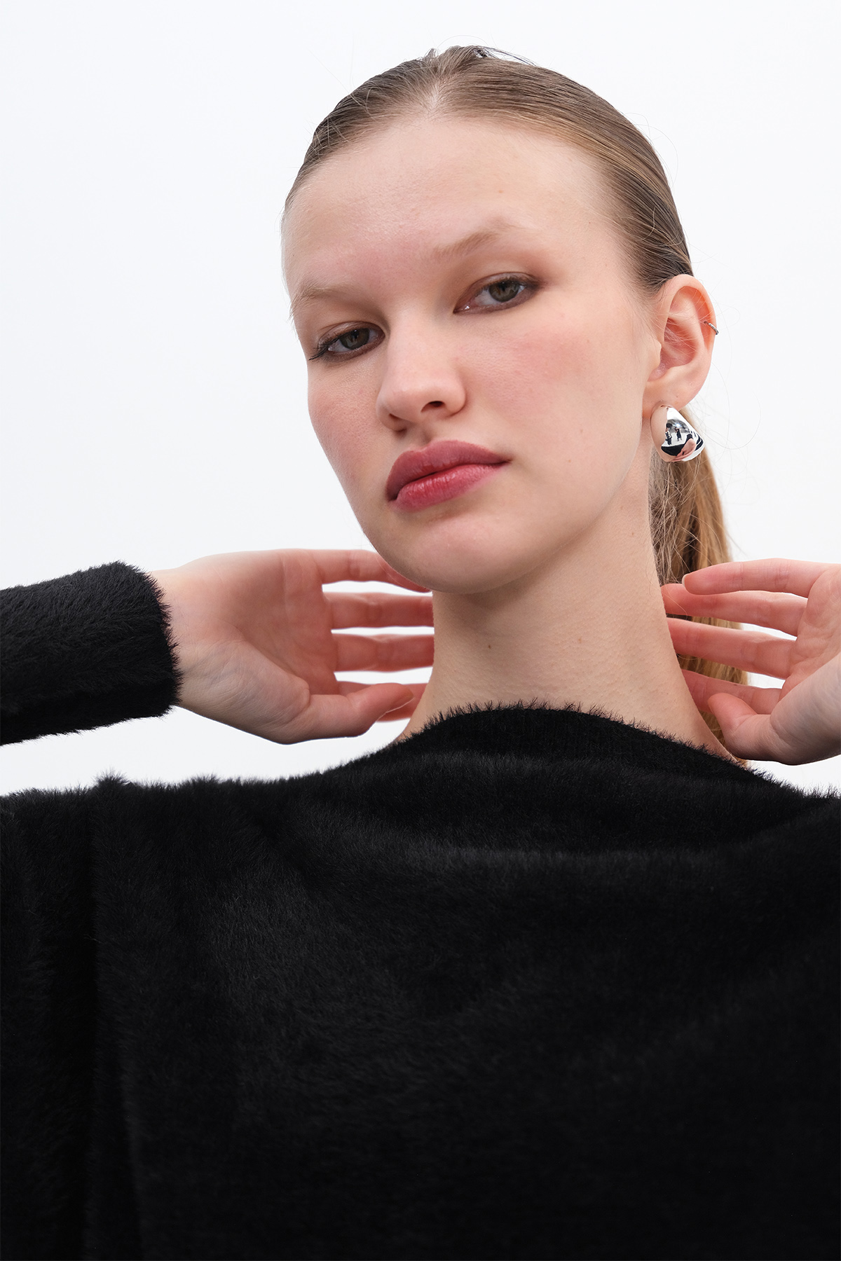 * Manşetleri ve etek ucu lastik örgülü basic kazak,