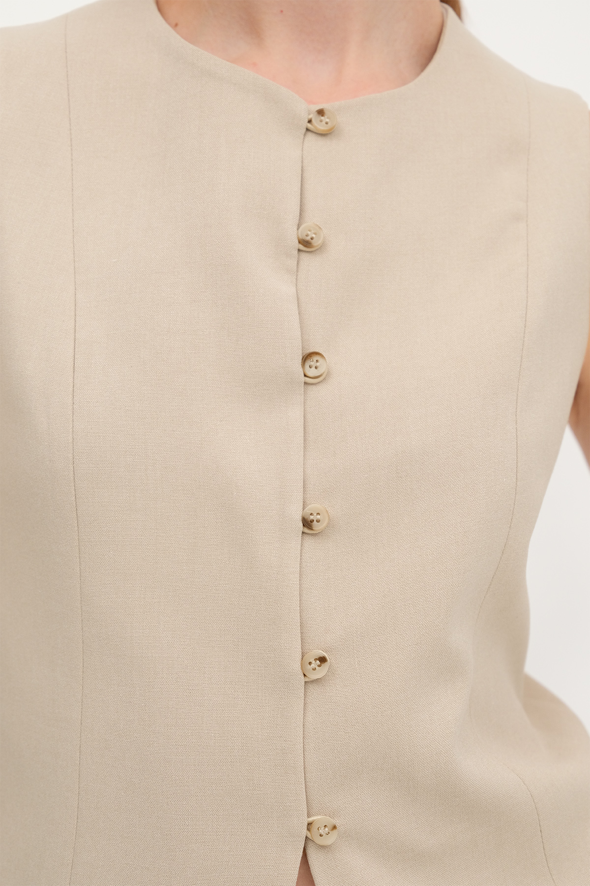 * Bisiklet yaka, kolsuz, düz renk, düğmeli,