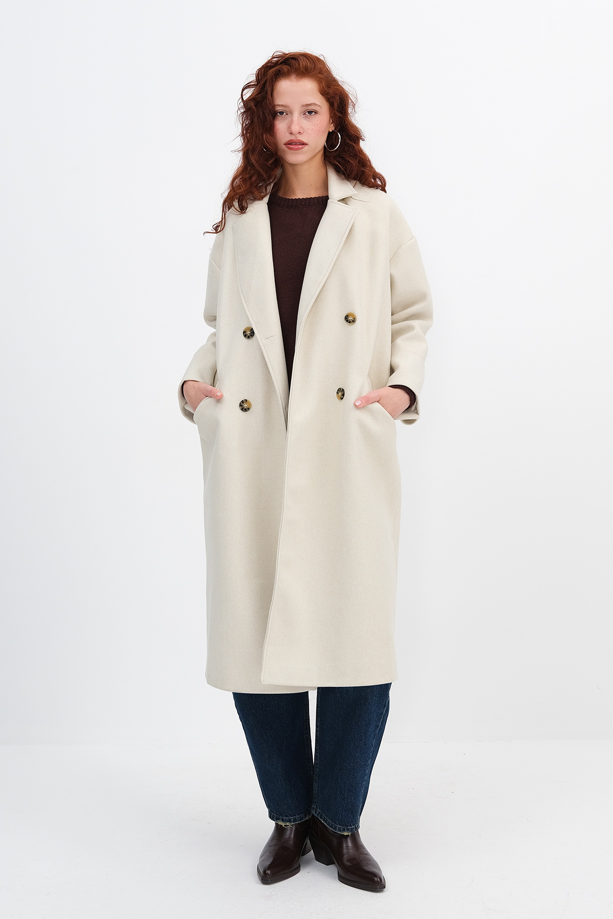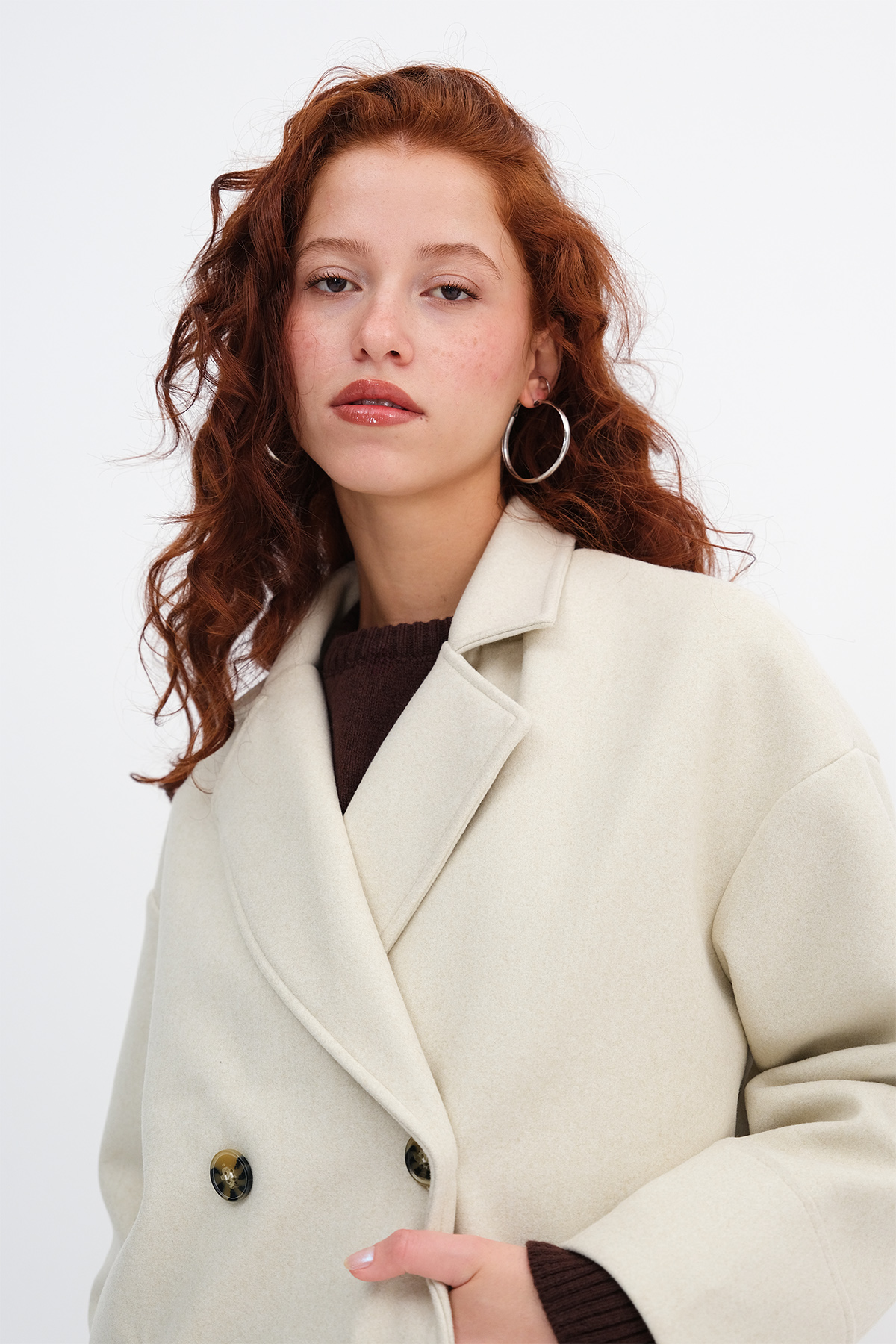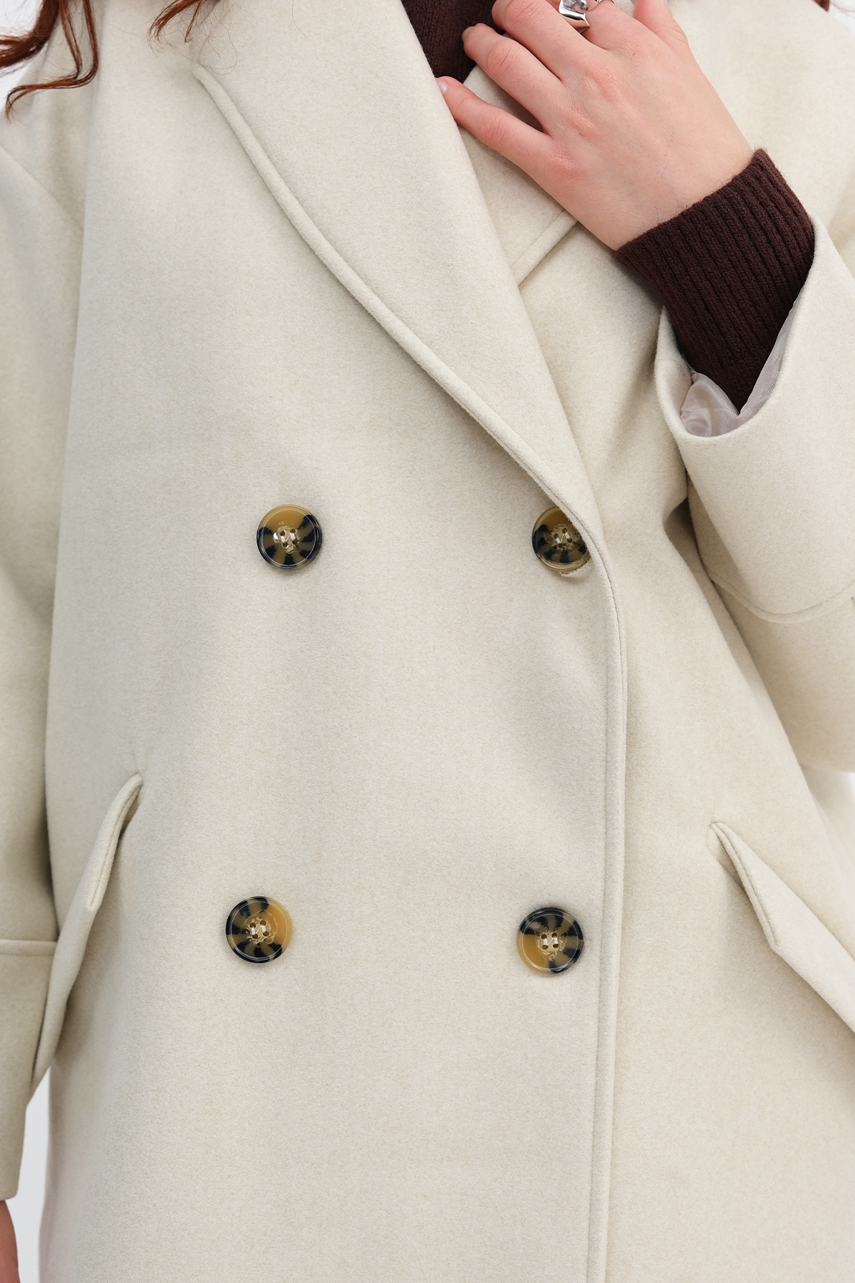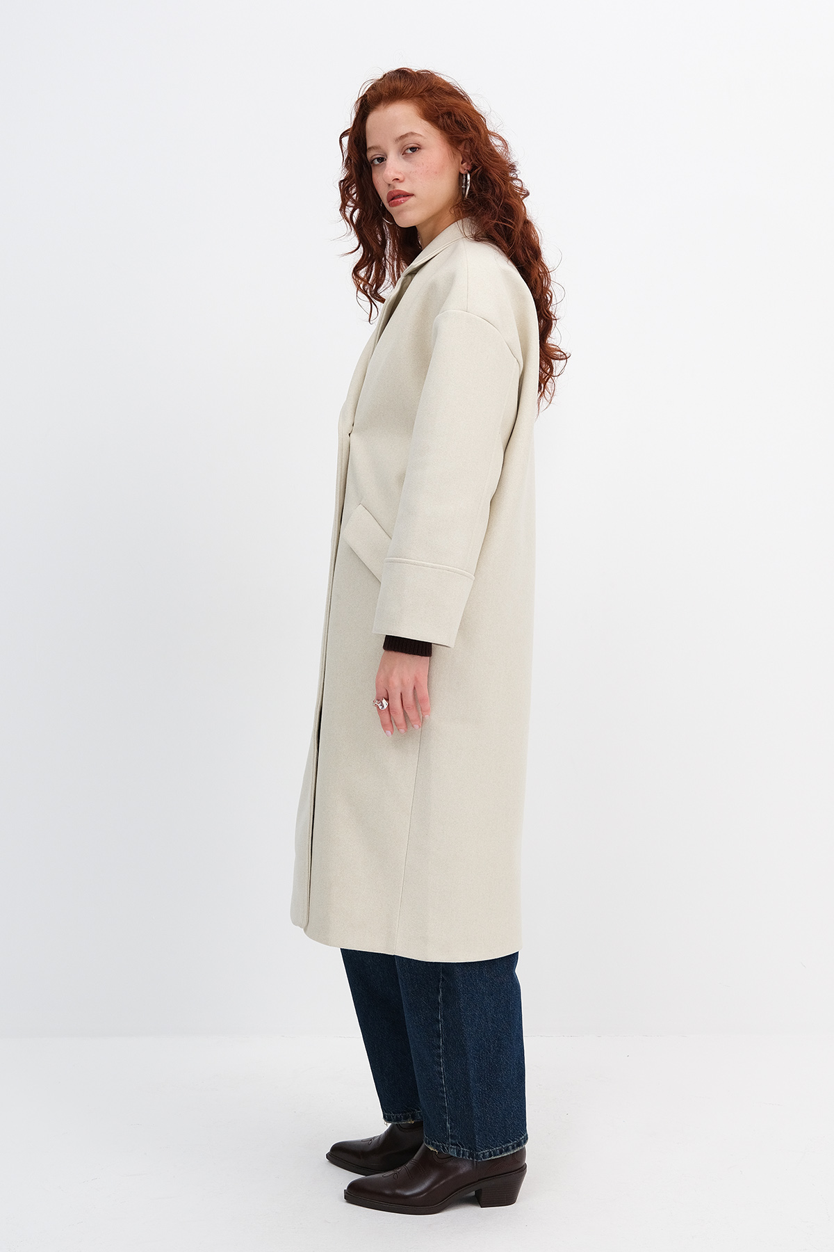 * Düşük omuz, düz renk, düğmeli, yandan cep detaylı,