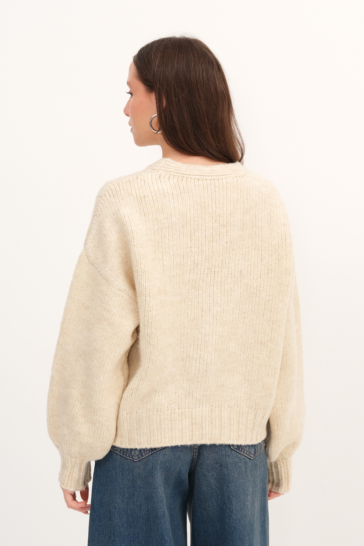 * V yaka, uzun kollu,* Düşük omuz, düğmeli,* Düz renk, triko hırka,* Ürün içeriği: %74 Akrilik %19 Polyester %7 Elastan* Manken üzerindeki ürün standart bedendir.* Numune beden ölçüleri: Boy: 55 cm Göğüs: 120 cm Kol boyu: 47 cm (1-3 cm değişiklik gösterebilir)* Ürün çekimlerinde renkler, ışık farklılığından dolayı değişkenlik gösterebilir.