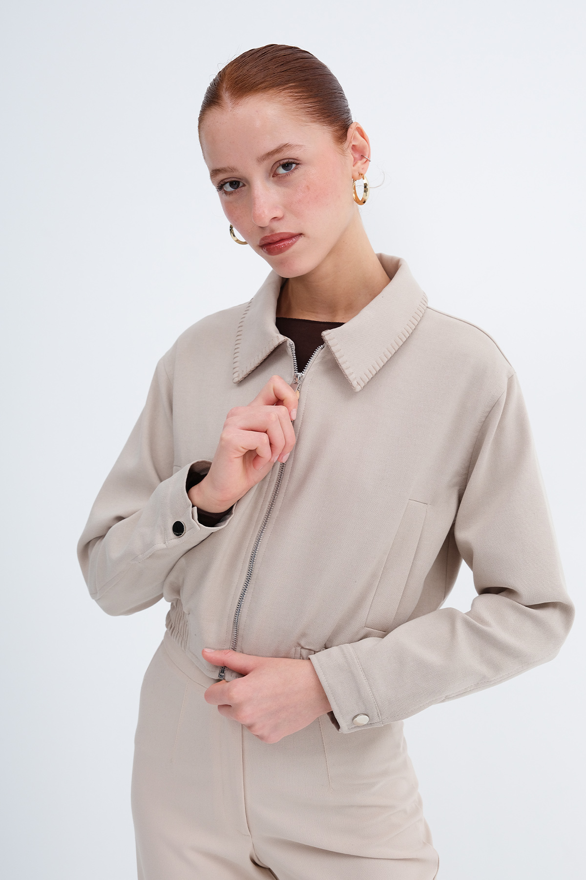 * Beli lastikli bomber ceket,