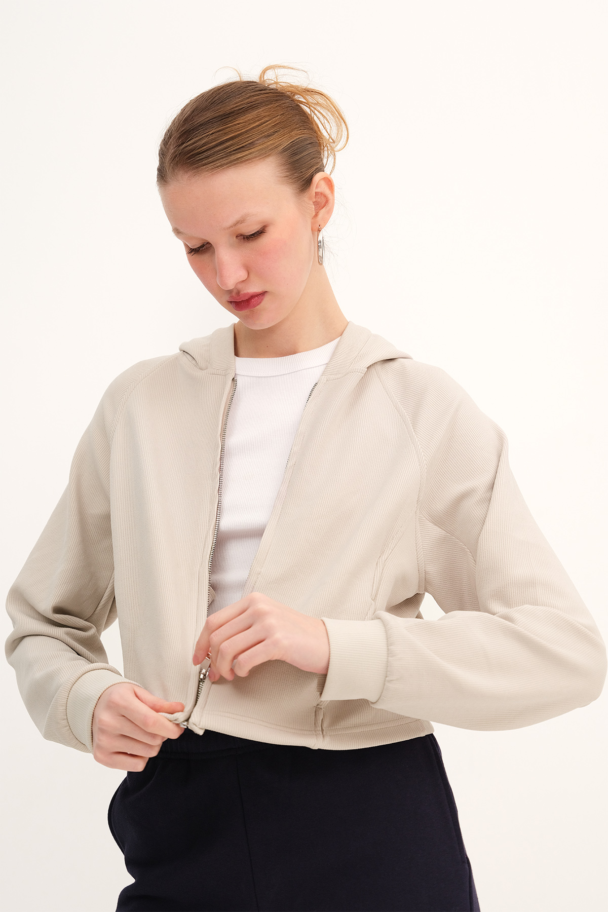 * Kapüşonlu, uzun kollu,* Fermuarlı, düz renk,* Cepli hırka,* Ürün içeriği: %50 Modal %44 Polyester %6 Elastan* Modal karışımlı kumaştan üretilmiştir.* Modal kumaş; Yıpranmaya karşı dayanıklı, nem transfer özelliği yüksek, cildinize rahatlık ve yumuşaklık hissi veren kaliteli kumaş türüdür.* Teninize nefes aldıran yapısı sayesinde her mevsim kullanıma uygundur.* Manken üzerindeki ürün 36/S bedendir.* Numune beden ölçüleri: Boy: 48 cm Göğüs: 80 cm kol boyu: 71 cm (1-3 cm değişiklik gösterebilir)* Kol boyu omuzdan ölçülmüştür.* Ürün çekimlerinde renkler, ışık farklılığından dolayı değişkenlik gösterebilir.