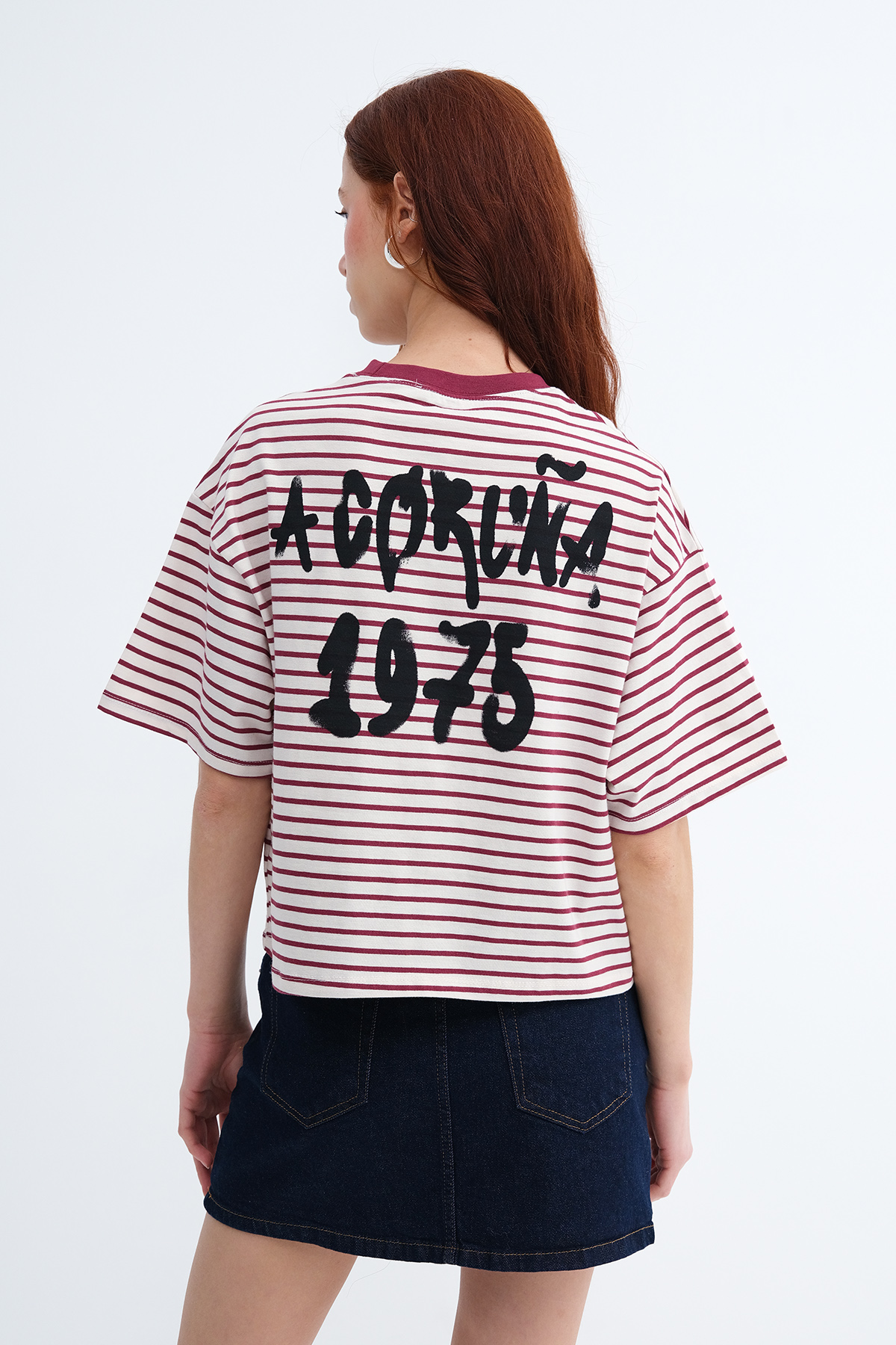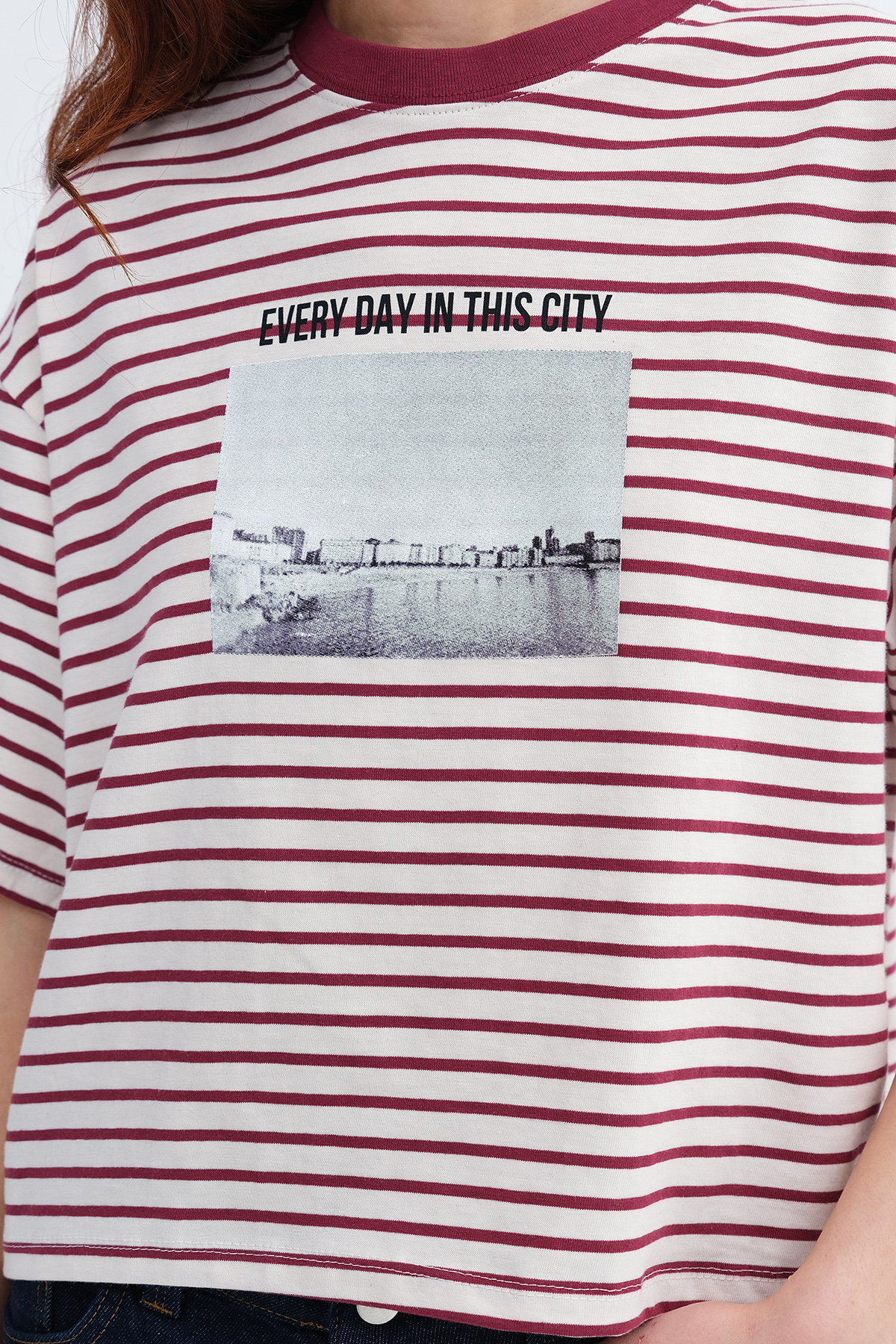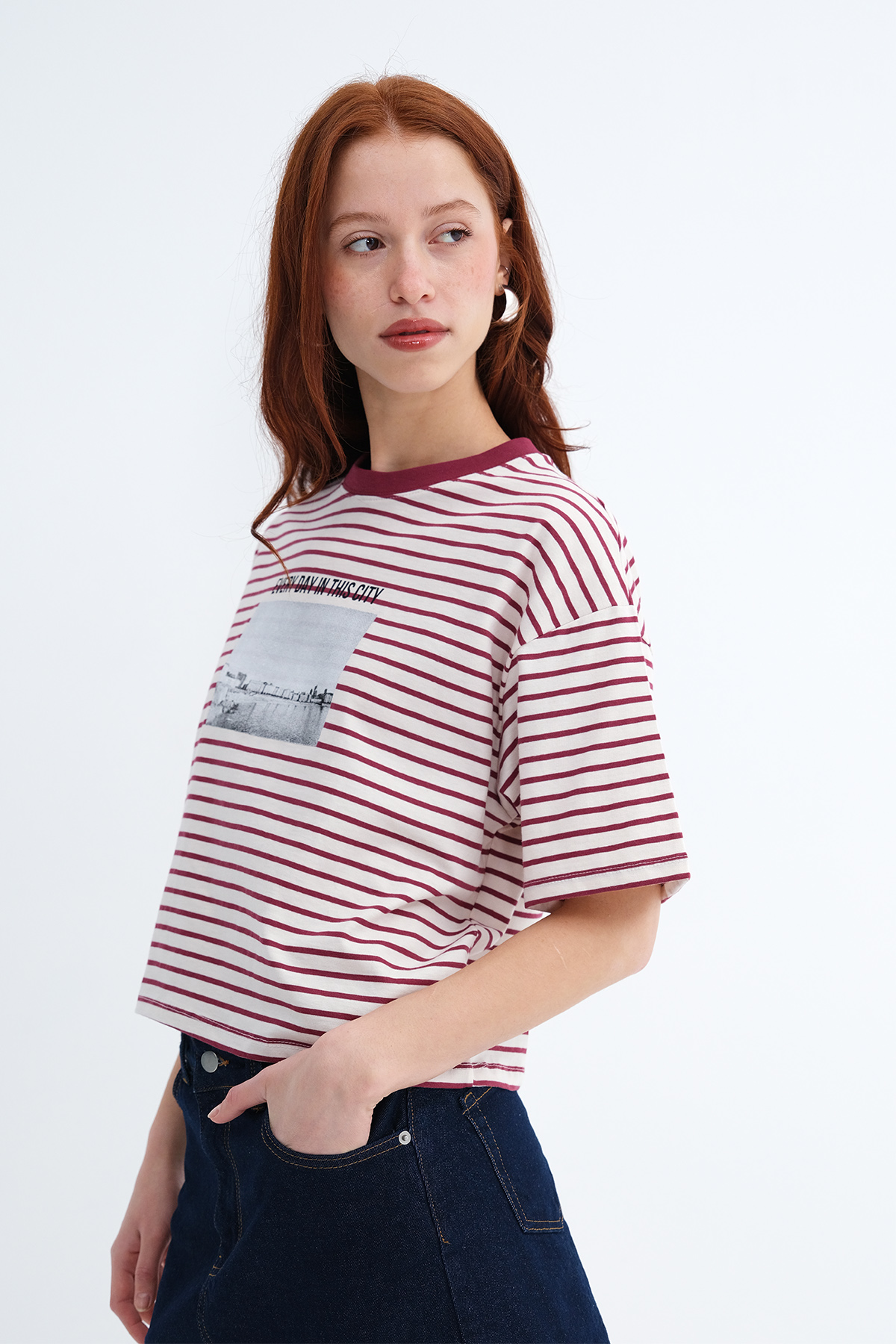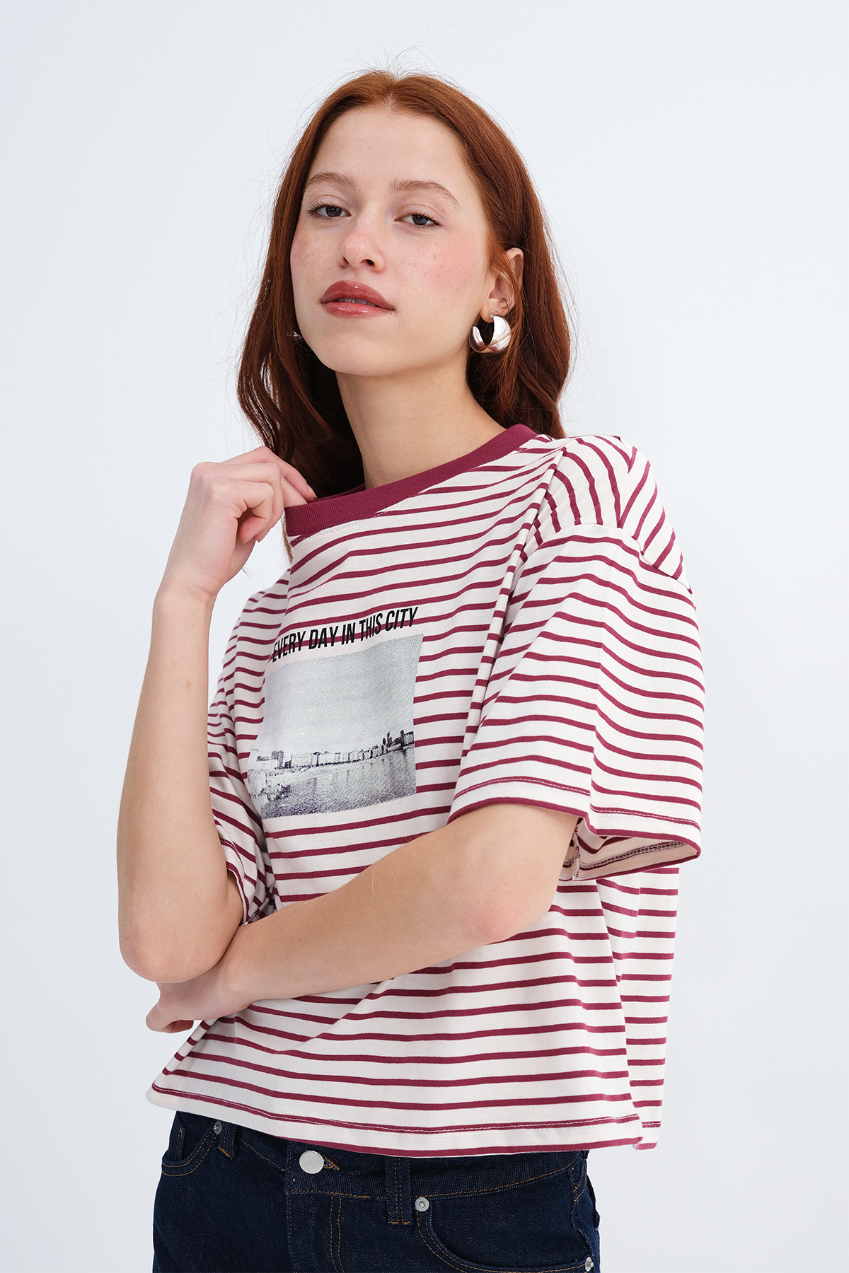 * Çizgili, baskılı t-shirt,