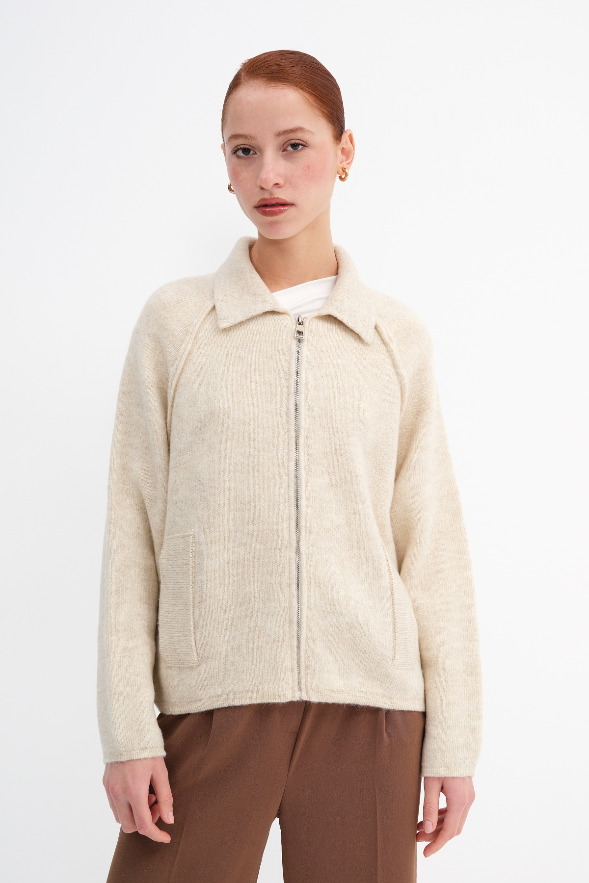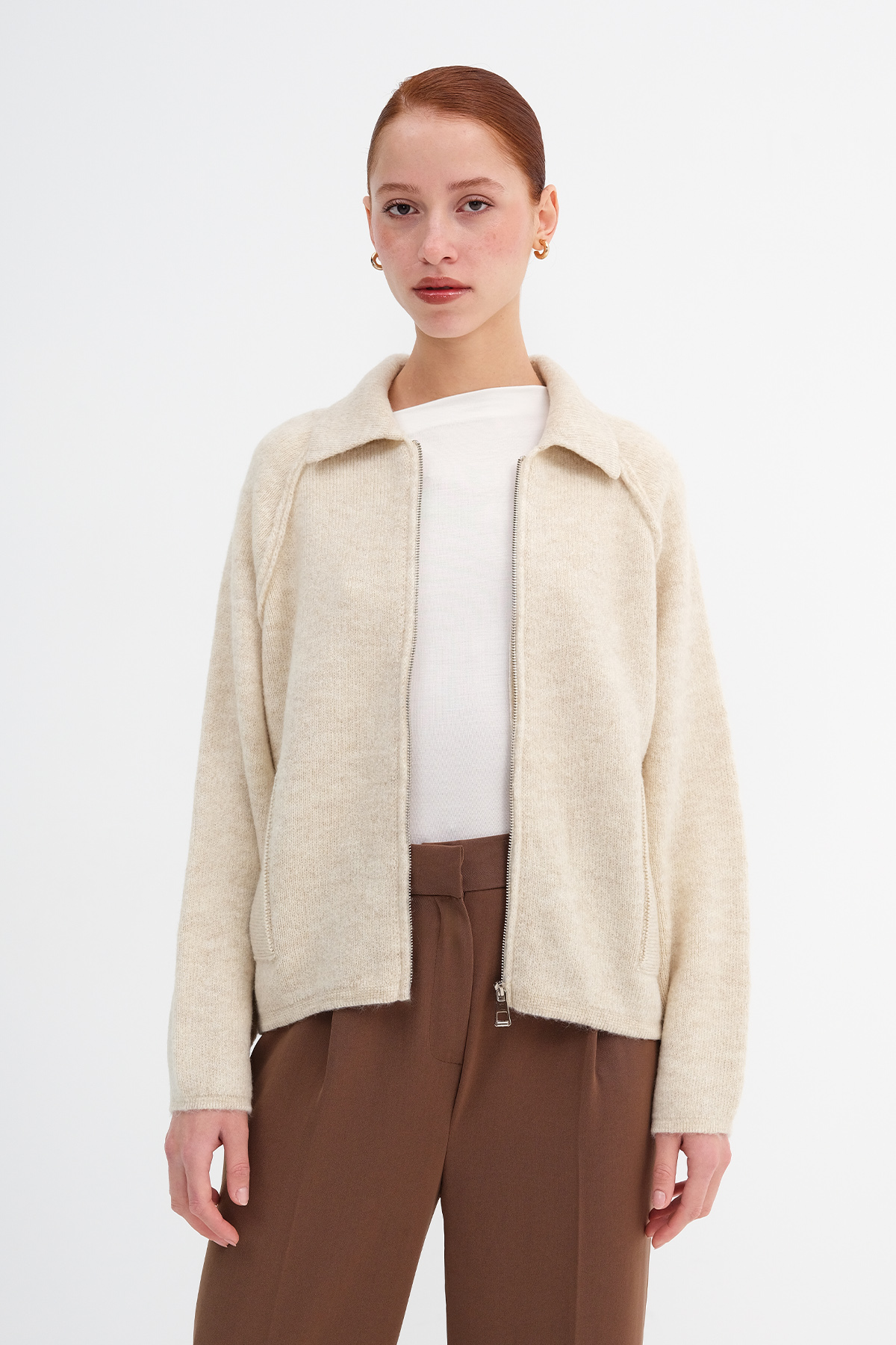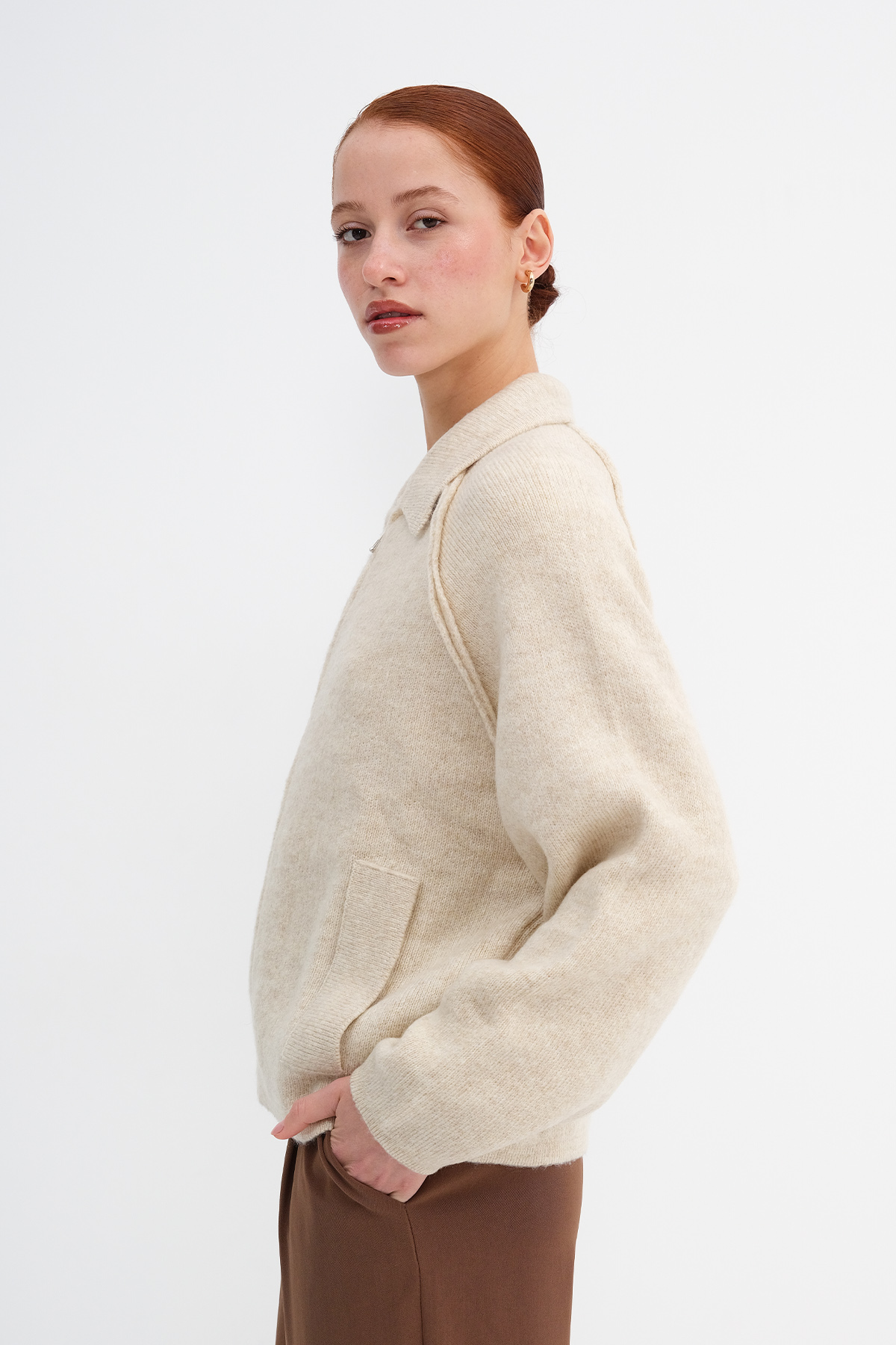 * Polo yaka, uzun kollu, fermuarlı, düz renk,