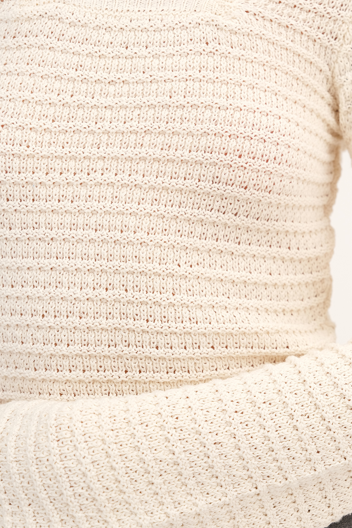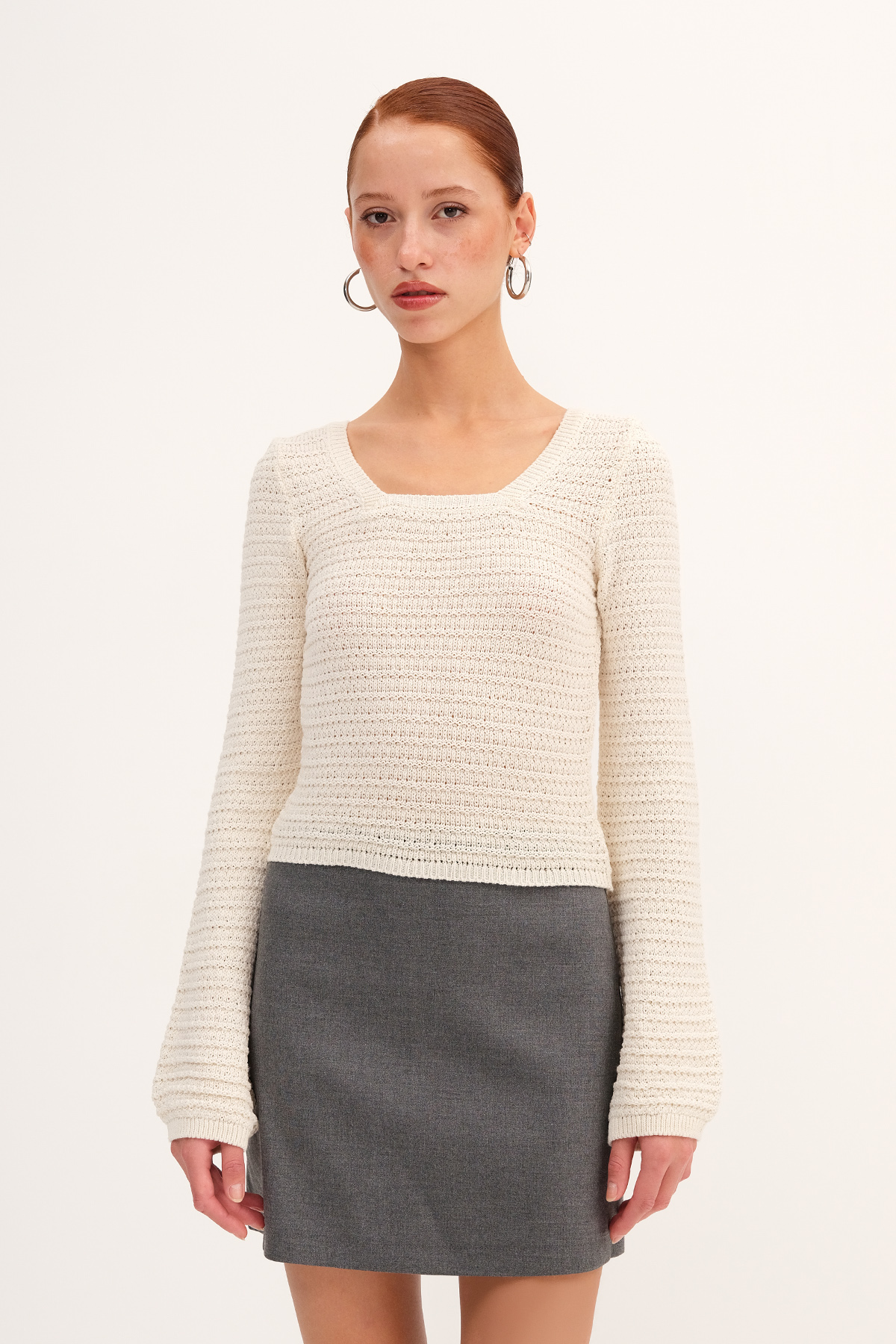 * Kare yaka, uzun kollu,* Sırtı bağlamalı, düz renk,* Vücuda oturan triko kazak,* Ürün içeriği:%60 Pamuk %40 Polyester,* Manken üzerindeki ürün standart bedendir.* Numun Beden Ölçüleri: Boy: 45 cm Göğüs: 66 cm Kol Boyu: 60 cm (1-3 cm arasında değişiklik gösterebilir)* Ürün çekimlerinde renkler, ışık farklılığından dolayı değişkenlik gösterebilir.