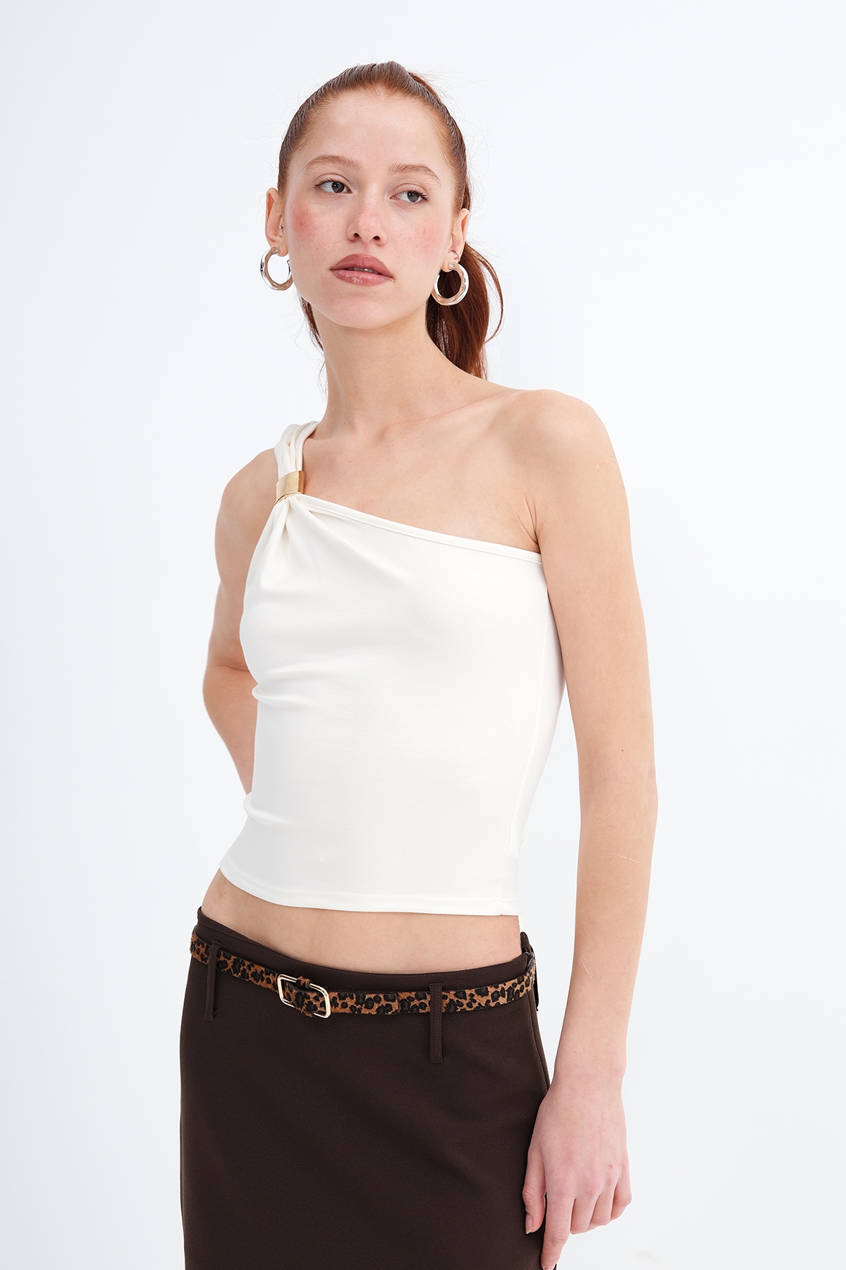 * Toka detaylı, düz renk, vücudu saran bluz,