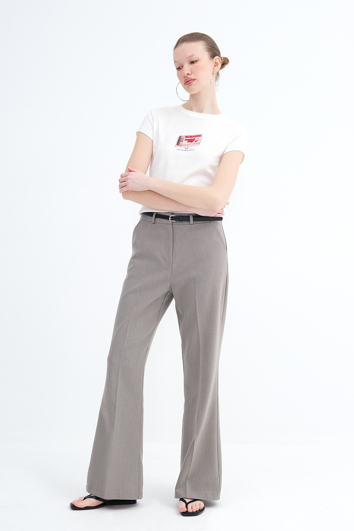 * İspanyol paça pantolon, kemer ürüne aittir.