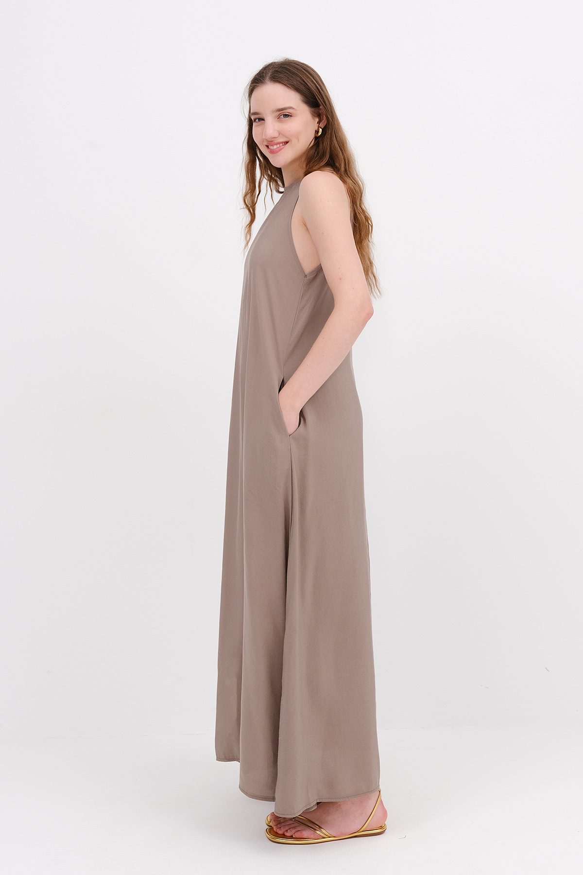 * Düz renk, rahat kalıp, astarsız, uzun elbise,