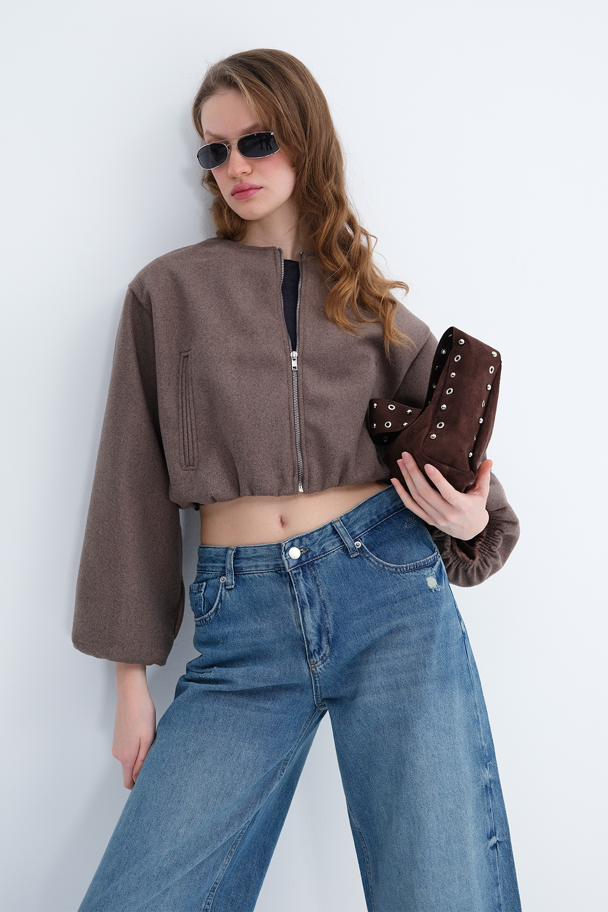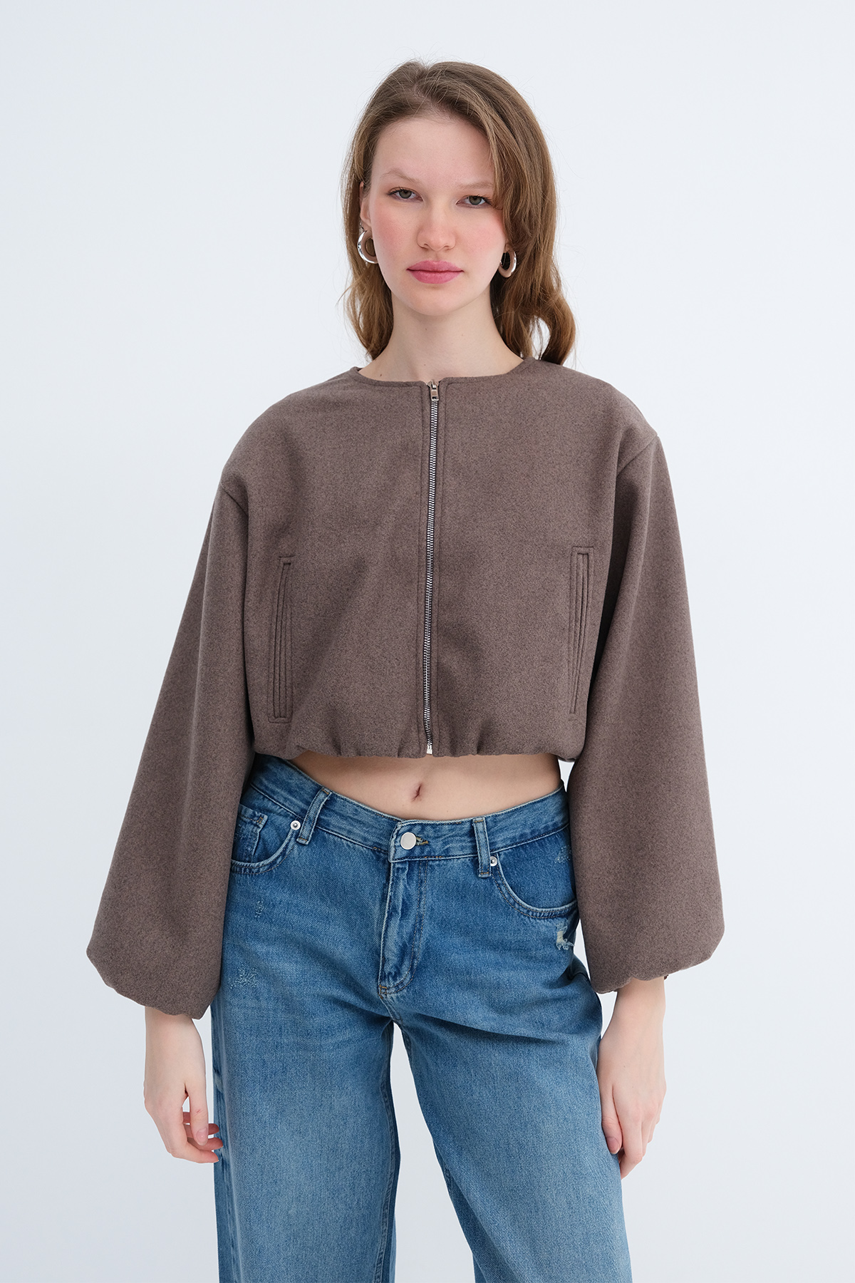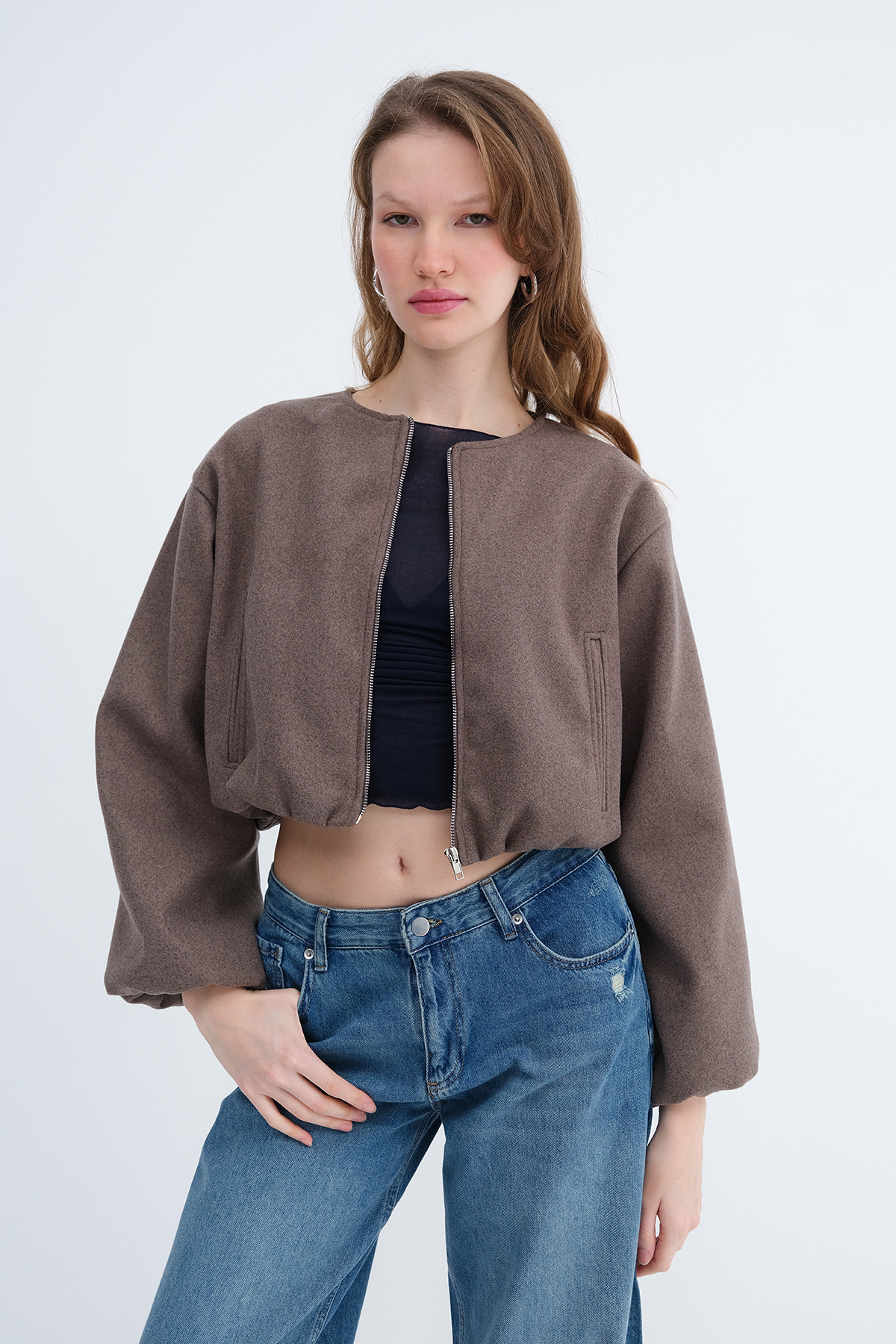 * Fermuarlı, çift cepli, düz renk, lastikli,