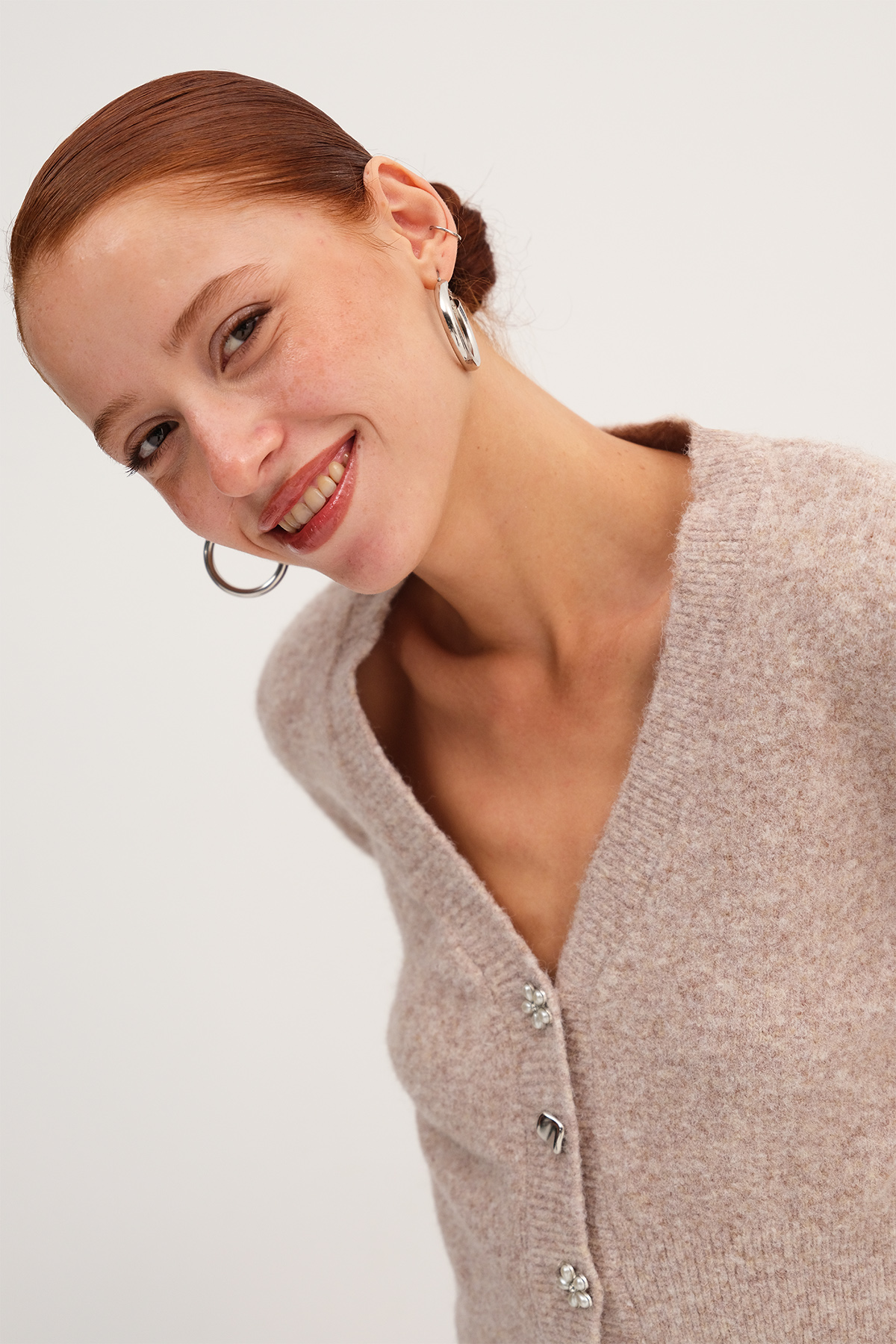 * V yaka, uzun kollu,* Düşük omuz, düğmeli,* Triko hırka,* Ürün içeriği: % 39 Akrilik %20 pes %14 Polyester %9 Polyamid%5 Yün %4 Spandex* Manken üzerindeki ürün standart bedendir.* Numune beden ölçüleri: Boy: 46 cm Göğüs: 90 cm Kol boyu: 58 cm (1-3 cm değişiklik gösterebilir)* Ürün çekimlerinde renkler, ışık farklılığından dolayı değişkenlik gösterebilir.