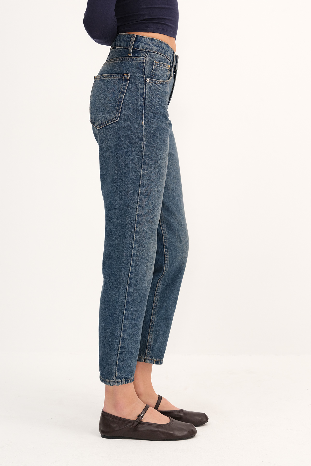 * Yüksek bel, kemer köprülü,* Düğmeli, fermuar patlı,* Düz renk, 5 cepli,* Mom jean pantolon,* Ürün içeriği: %100 Pamuk* Manken üzerindeki ürün 26 bedendir.* Numune beden ölçüleri: Boy: 94 cm Bel: 70 cm* Basen:110 cm İç bacak boyu: 71 cm (1-3 cm değişiklik gösterebilir)* Ürün çekimlerinde renkler, ışık farklılığından dolayı değişkenlik gösterebilir.