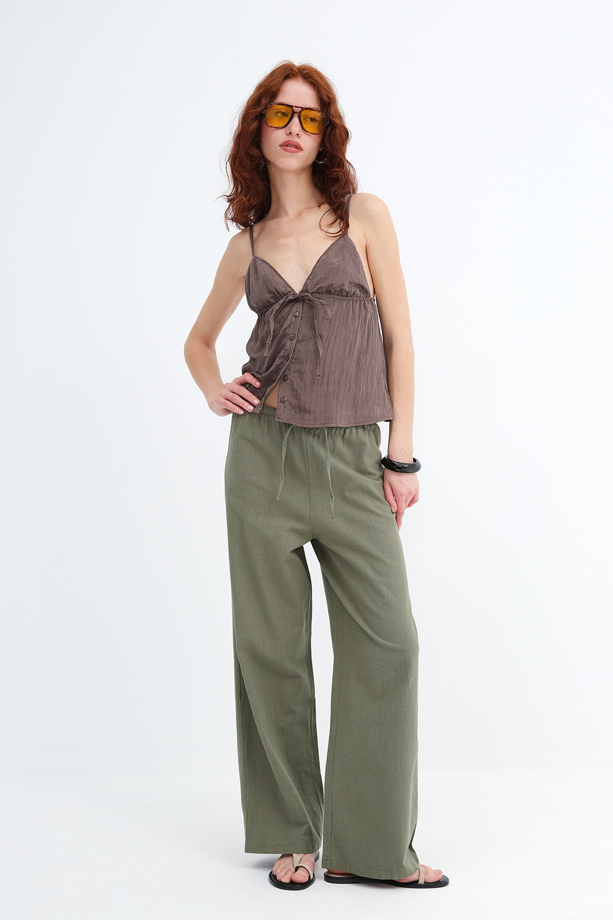 * Cepsiz, düz renk, wide leg pantolon,