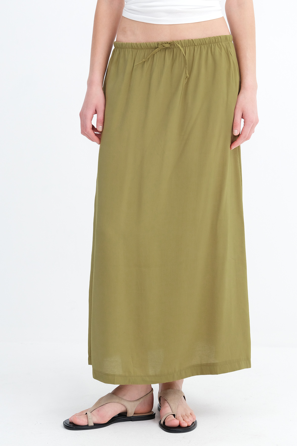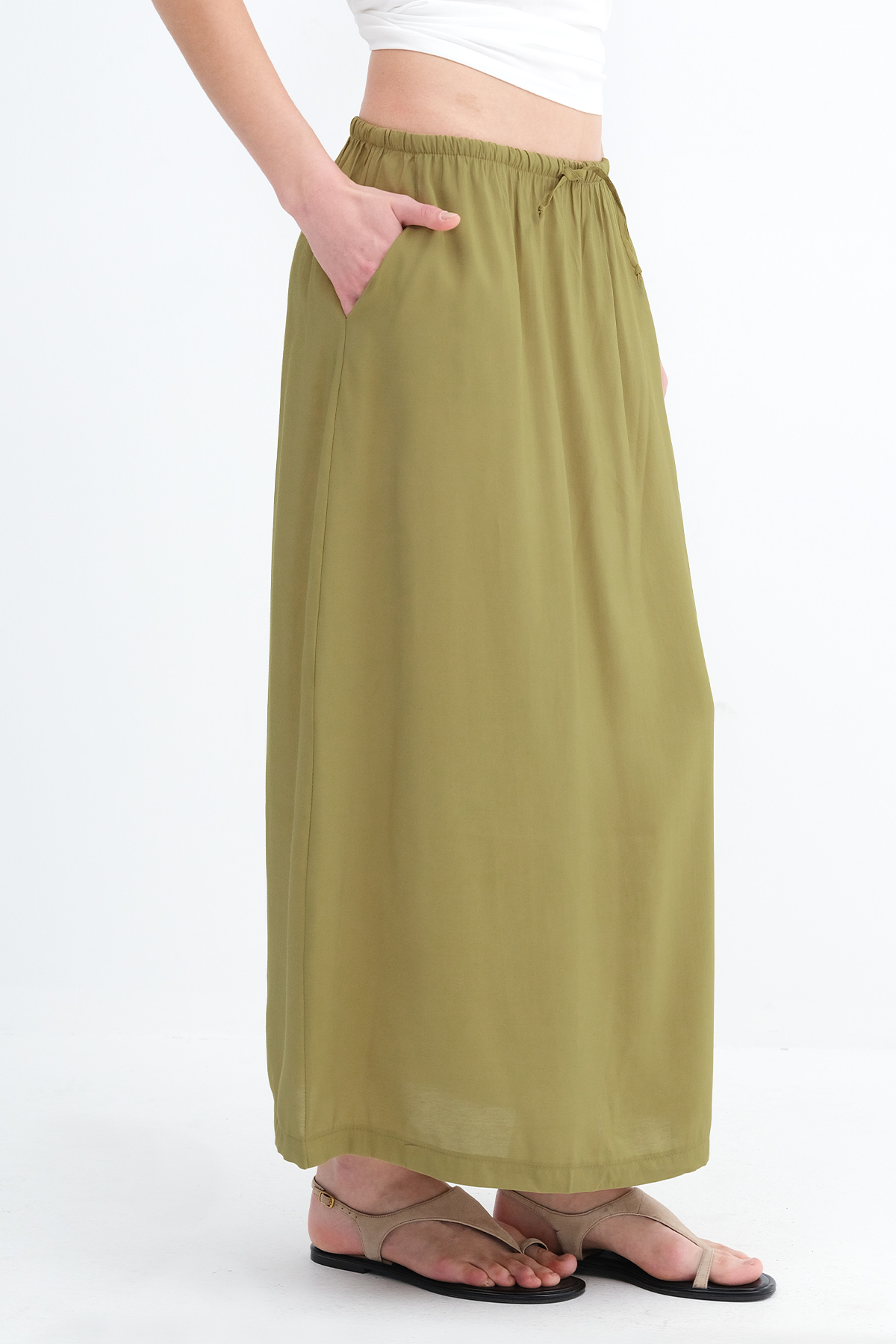 * Yandan cepli, düz renk, astarsız uzun etek,