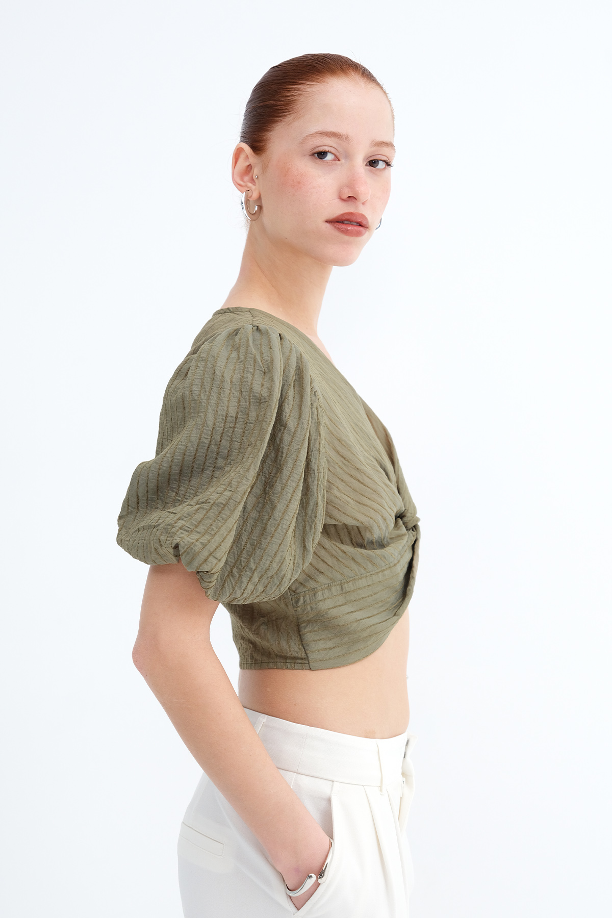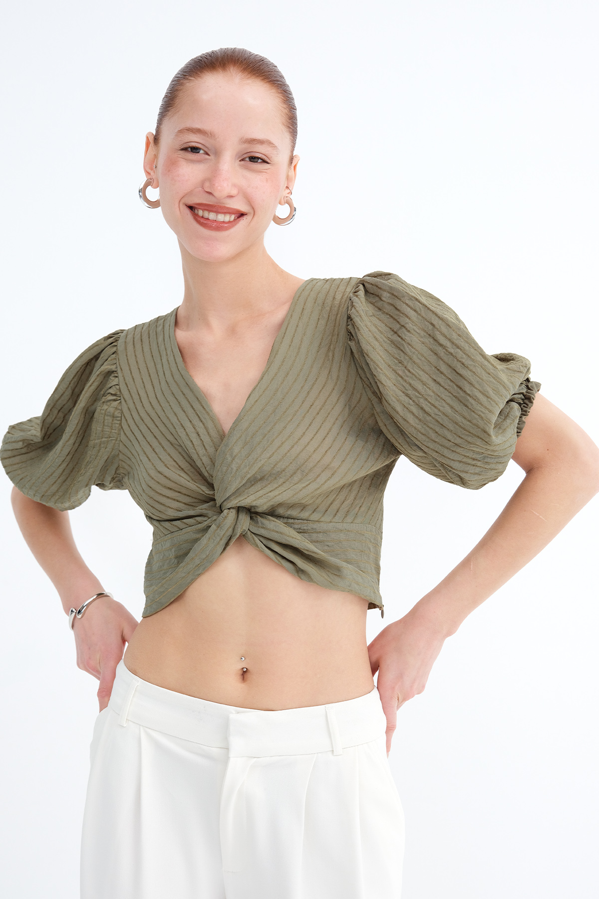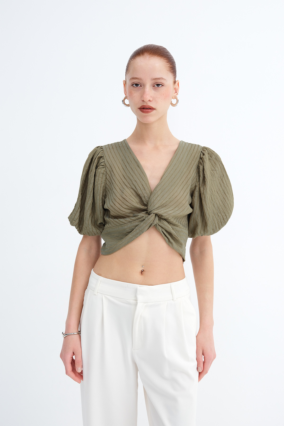 * Düğüm detaylı, yandan fermuarlı bluz,