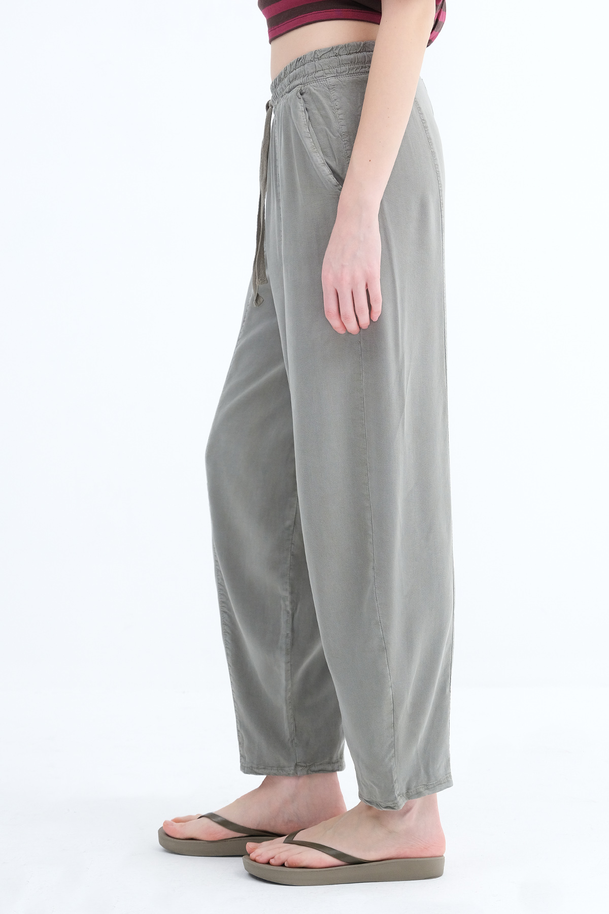 * Normal bel, beli lastikli, yandan çift cepli,