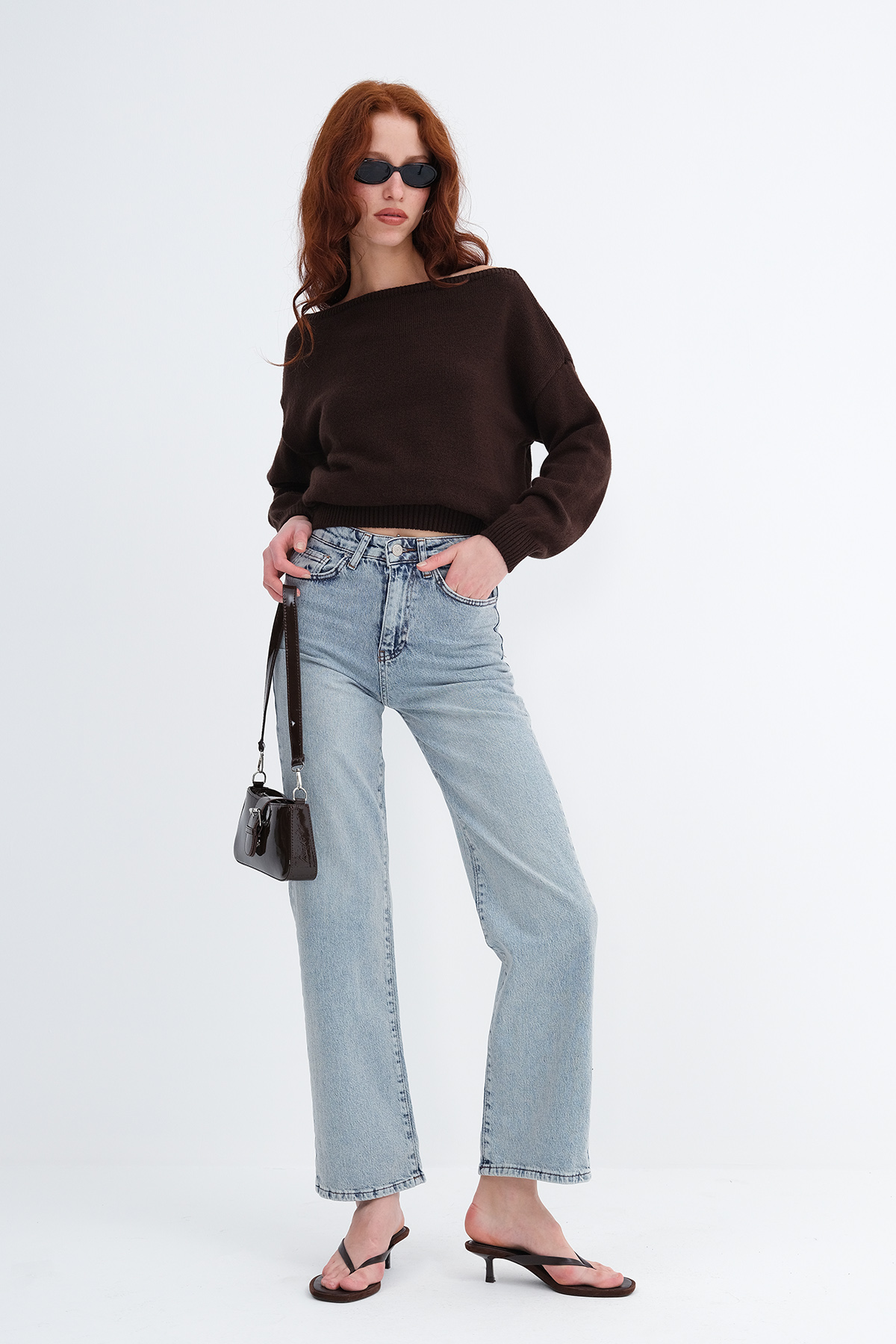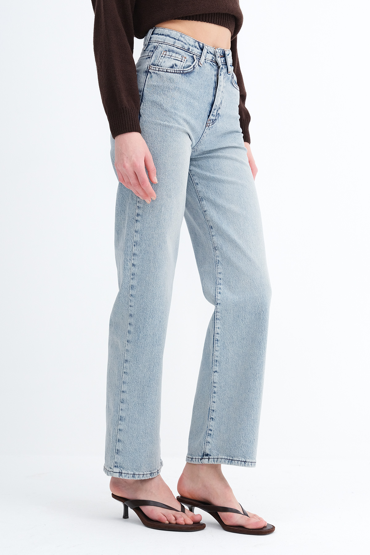 * 5 cepli, düz renk, wide leg jean pantolon,