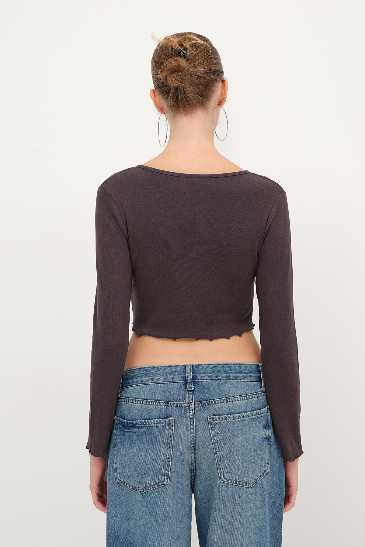 * Manşetleri ve etek ucu kıvrımlı, crop hırka,