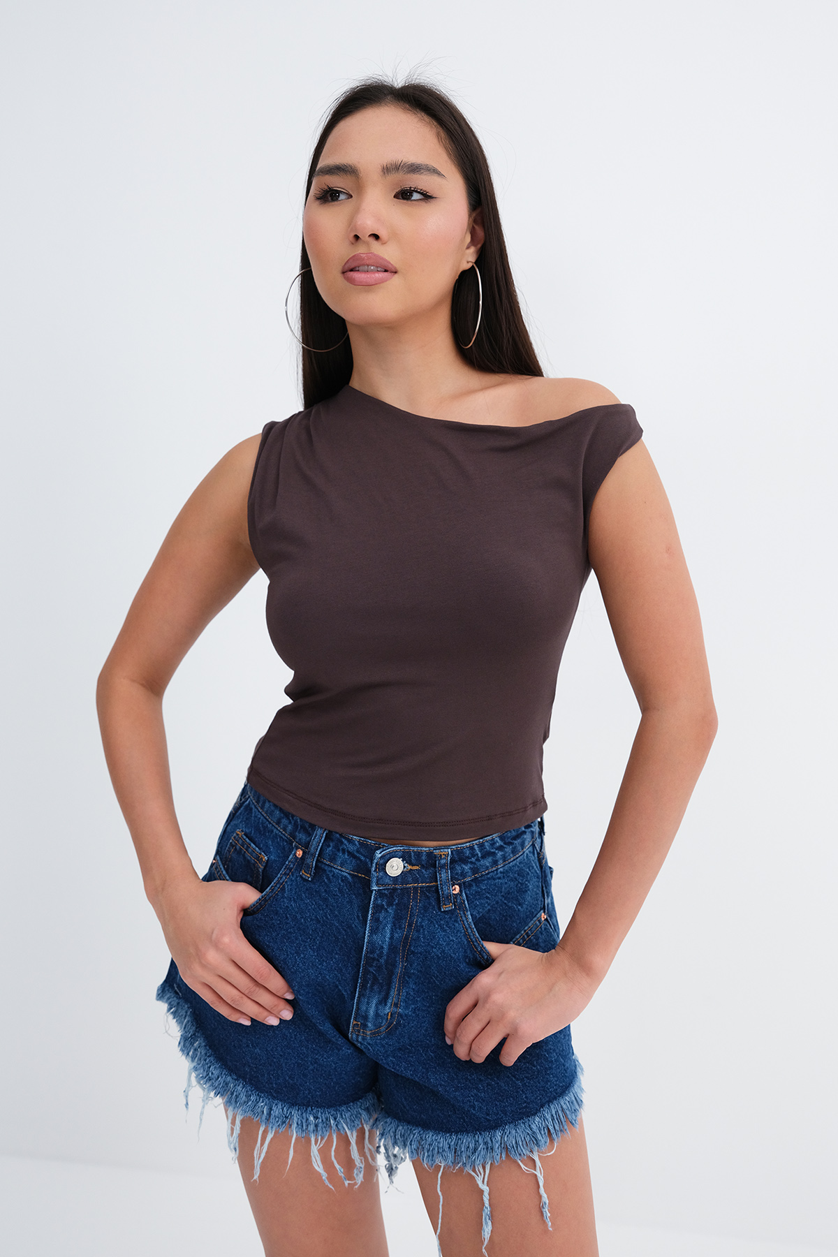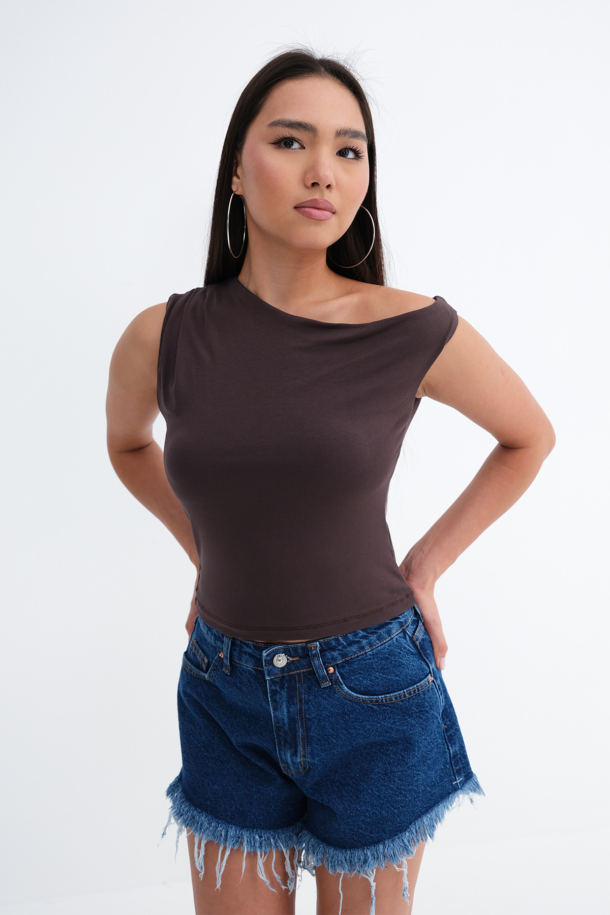 * Kayık yaka, kolsuz, düz renk,