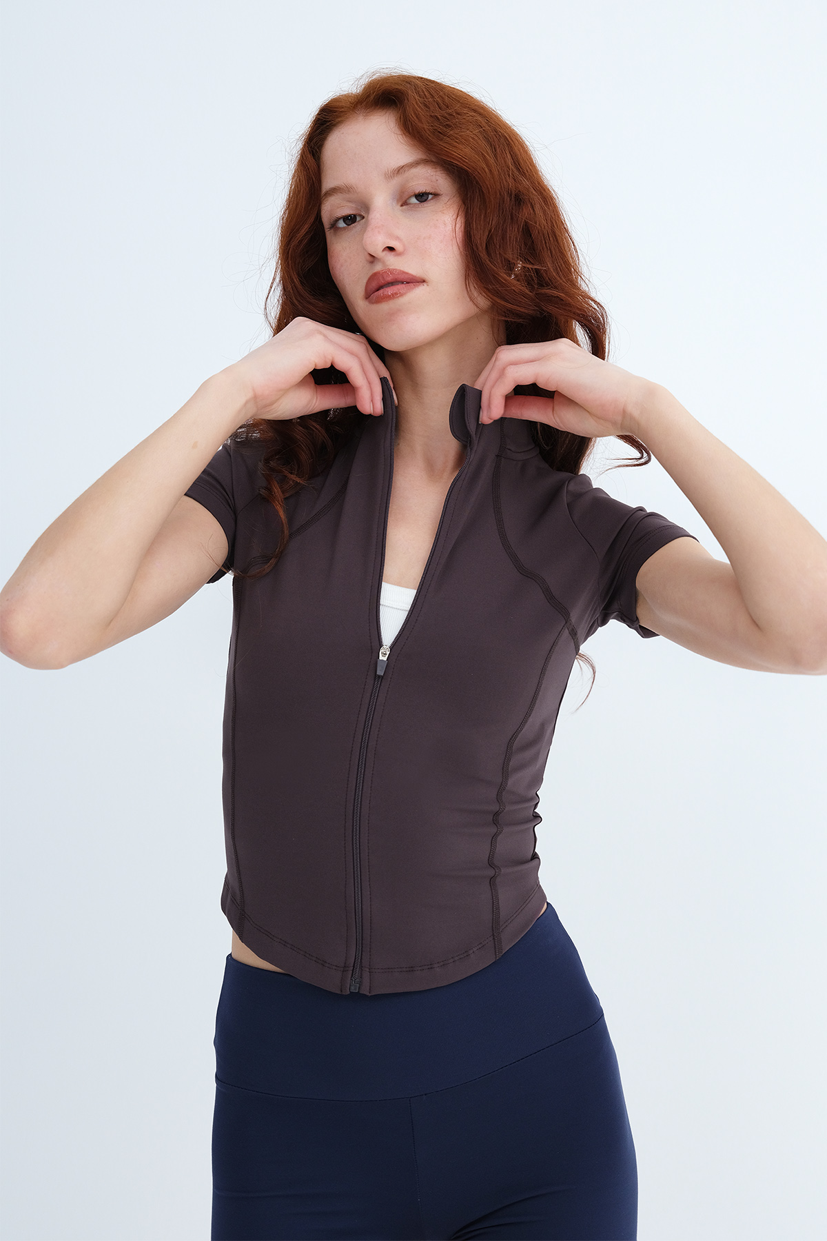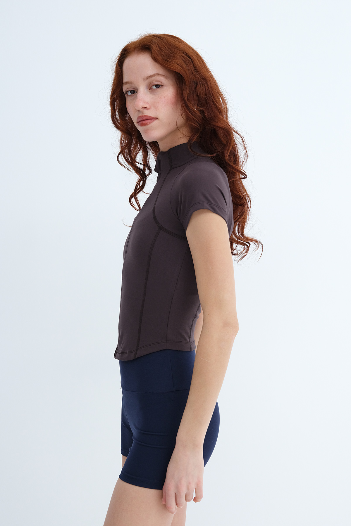 * Dik yaka, kısa kollu, düz renk,