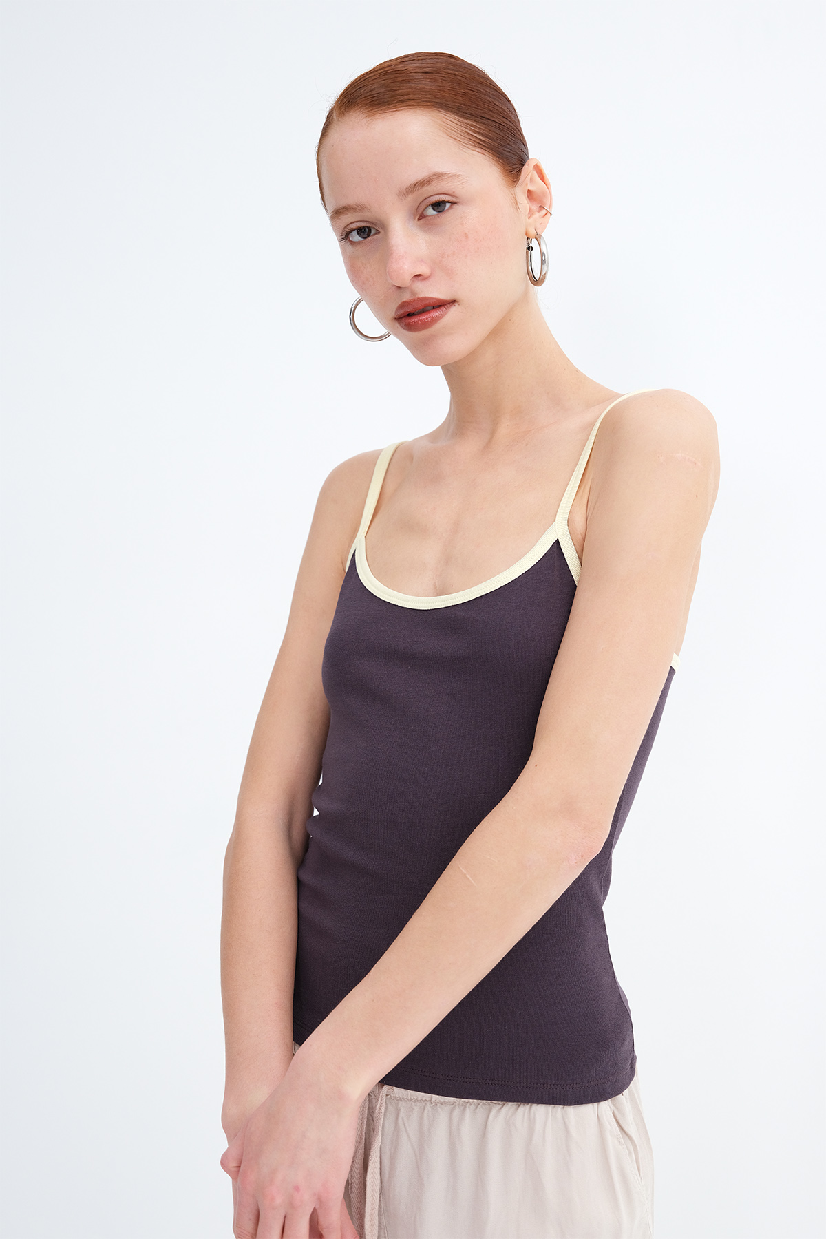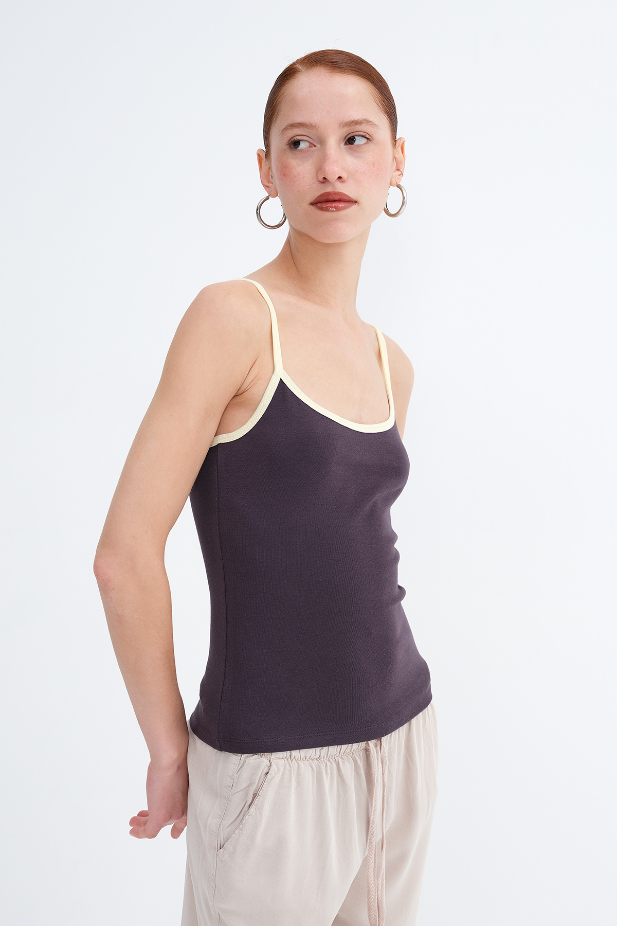 * Bisiklet yaka, askılı,