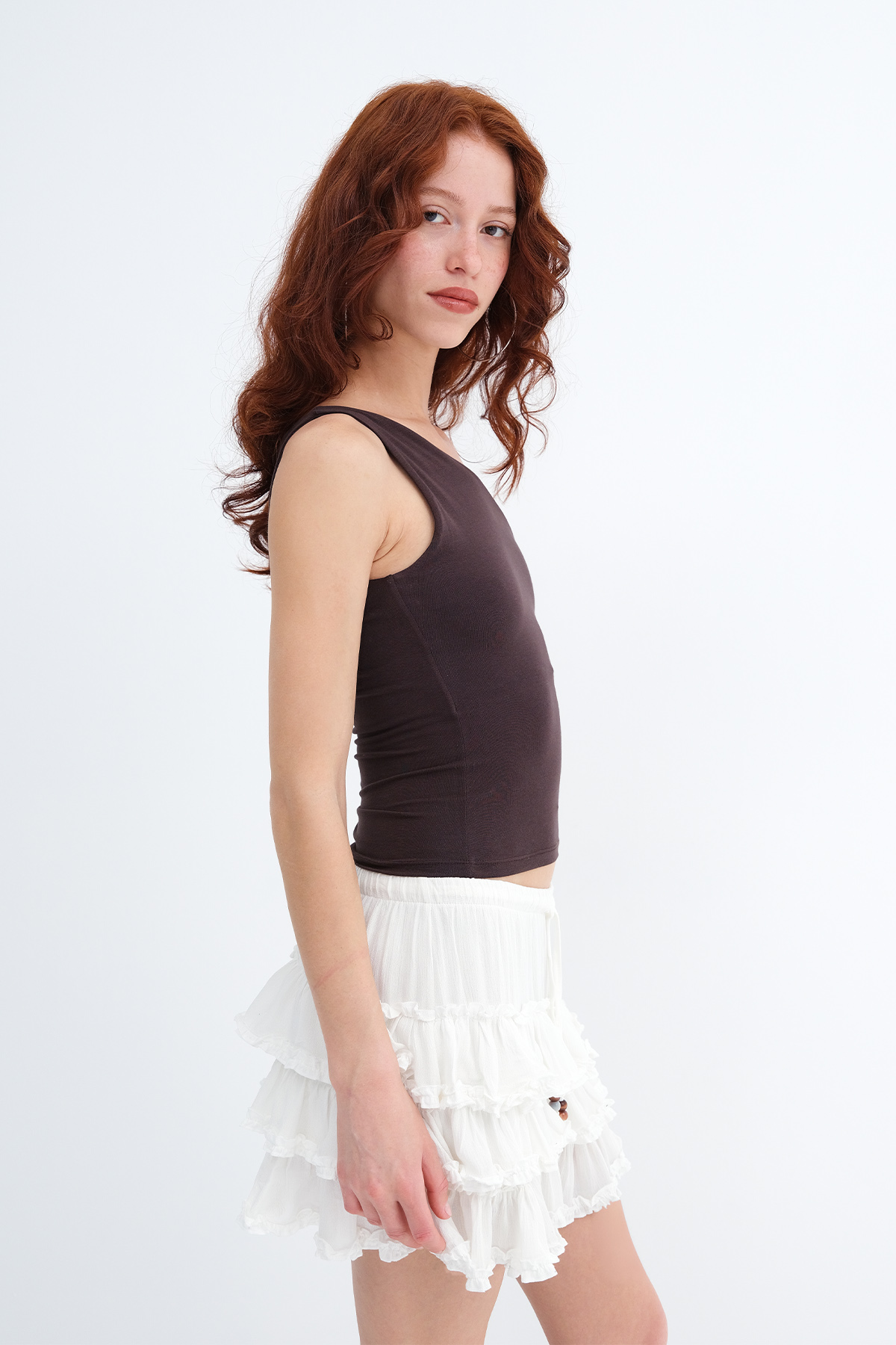 * Tek omuz, vücudu saran, göğüs kısmı çift katlı,